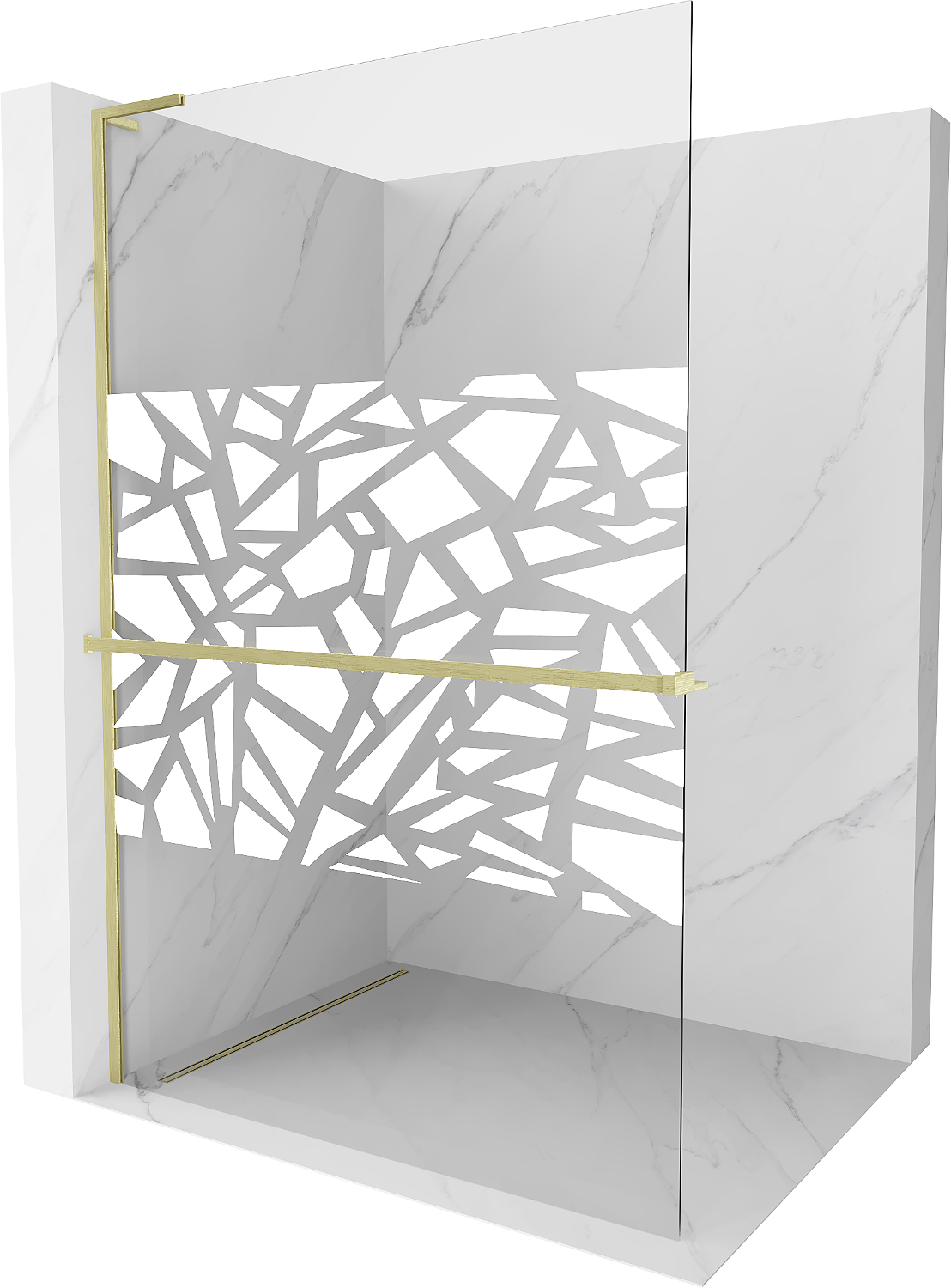 Mexen Kioto+ L paroi de douche avec étagère Walk-in 70 x 200 cm, motif blanc, or brossé - 800-070-123-55-85
