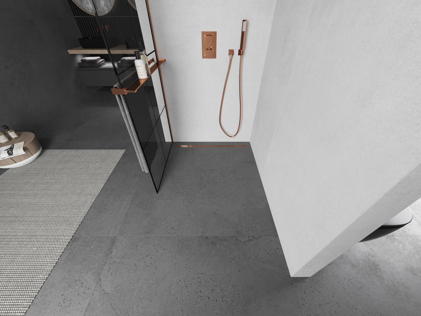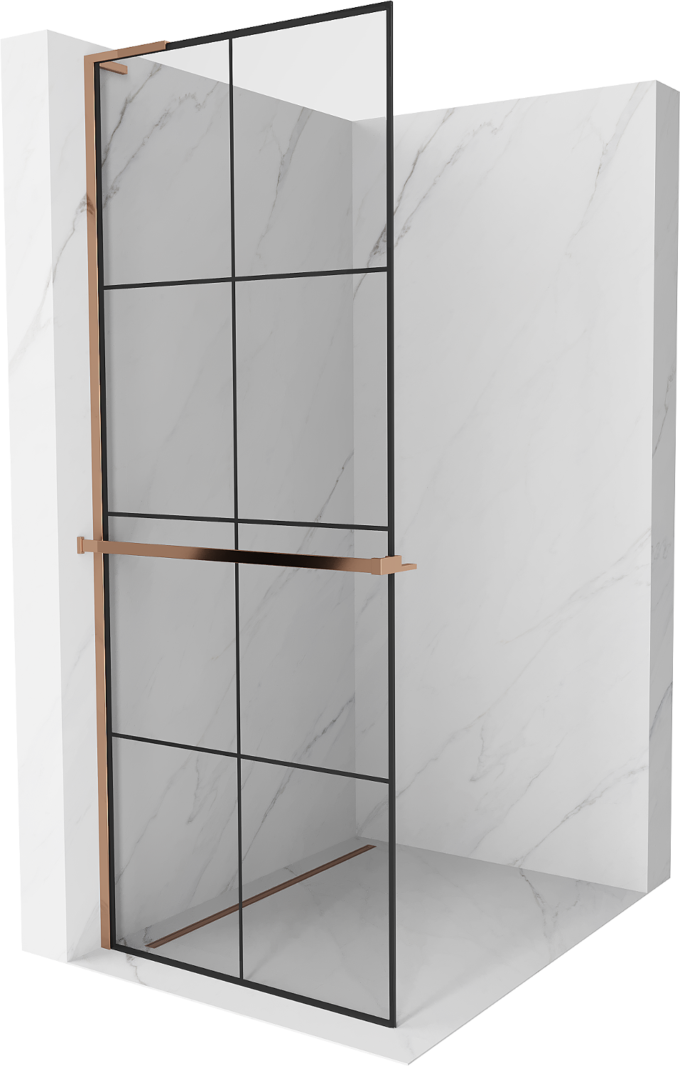 Mexen Kioto+ L paroi de douche avec étagère Walk-in 80 x 200 cm, grille noire, or rose - 800-080-123-60-77
