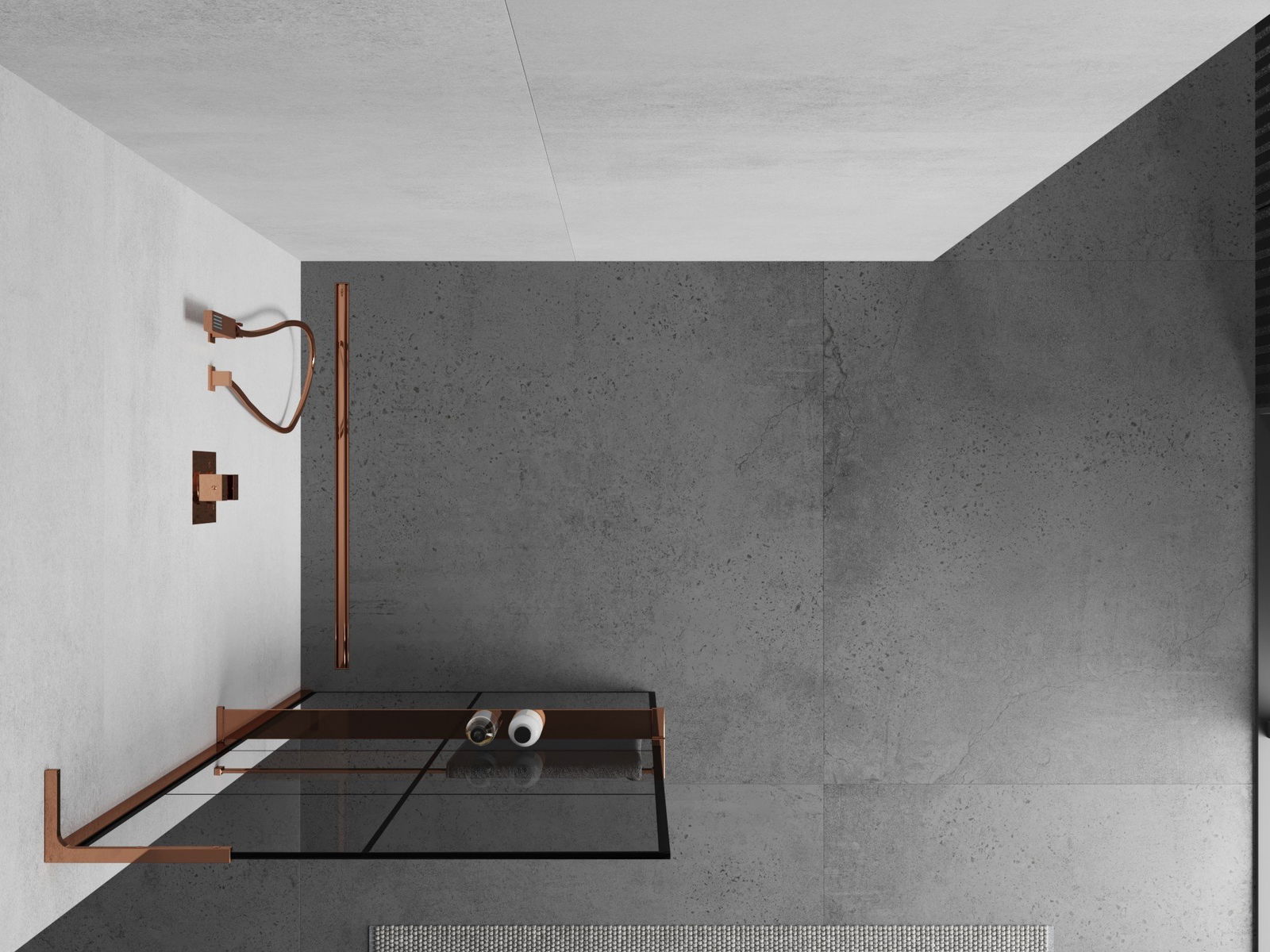 Mexen Kioto+ L paroi de douche avec étagère Walk-in 90 x 200 cm, quadrillage noir, or rose - 800-090-123-60-77