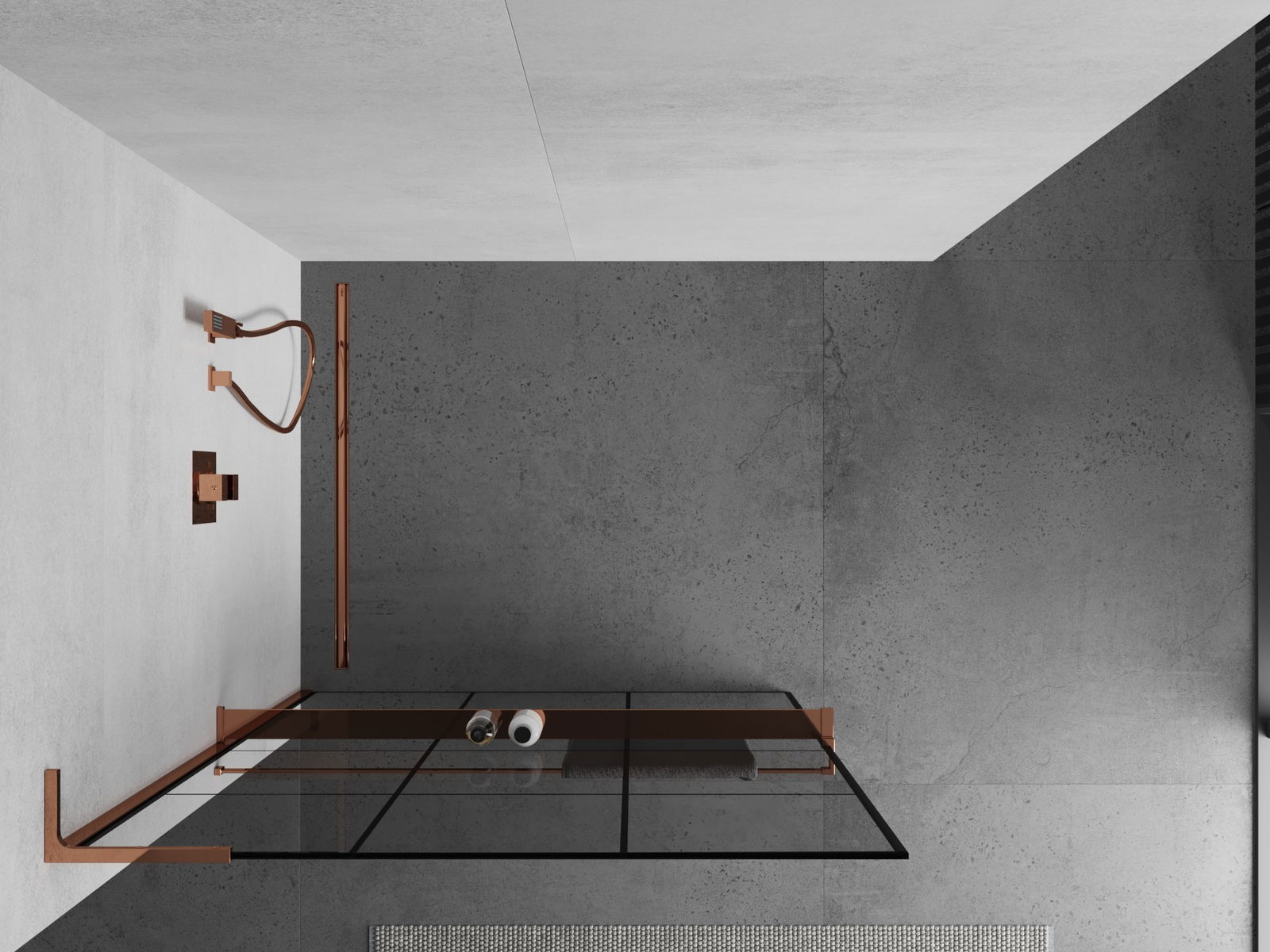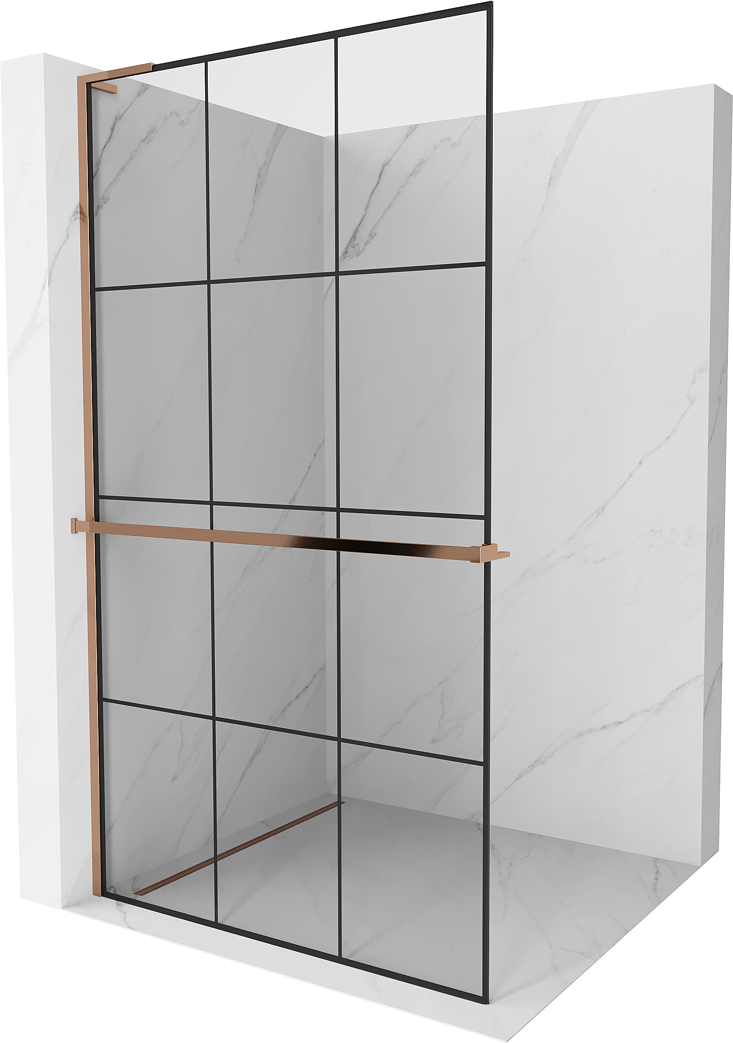 Mexen Kioto+ L paroi de douche avec étagère Walk-in 110 x 200 cm, grille noire, or rose - 800-110-123-60-77