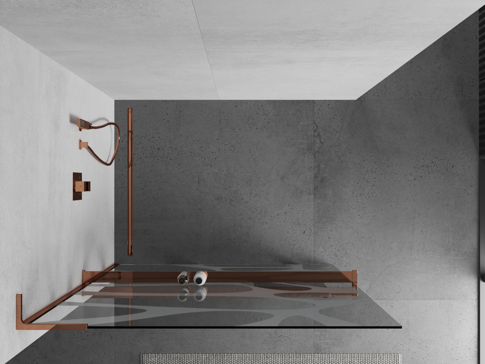 Mexen Kioto+ L paroi de douche avec étagère Walk-in 70 x 200 cm, vague blanche, or rose - 800-070-123-60-97