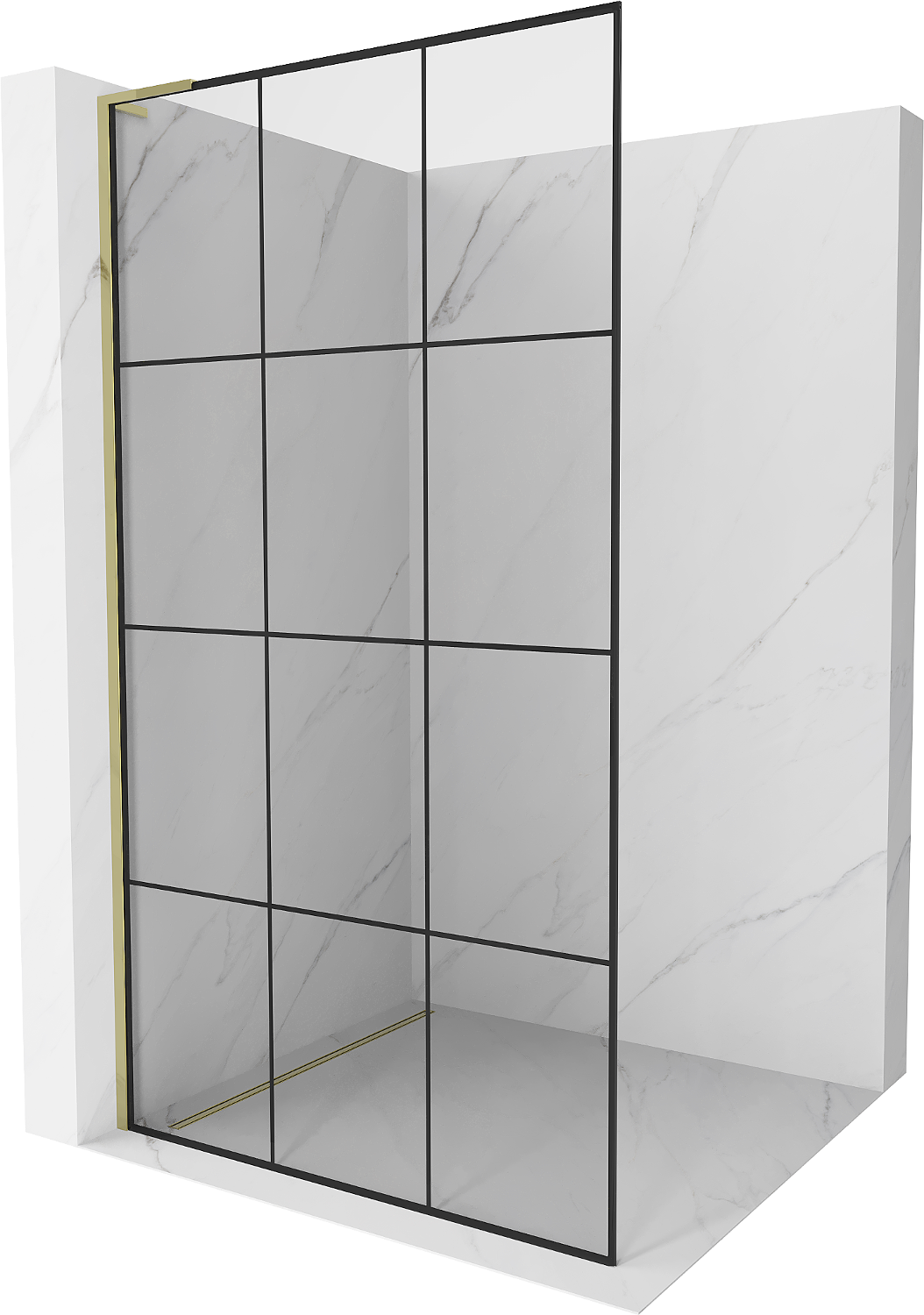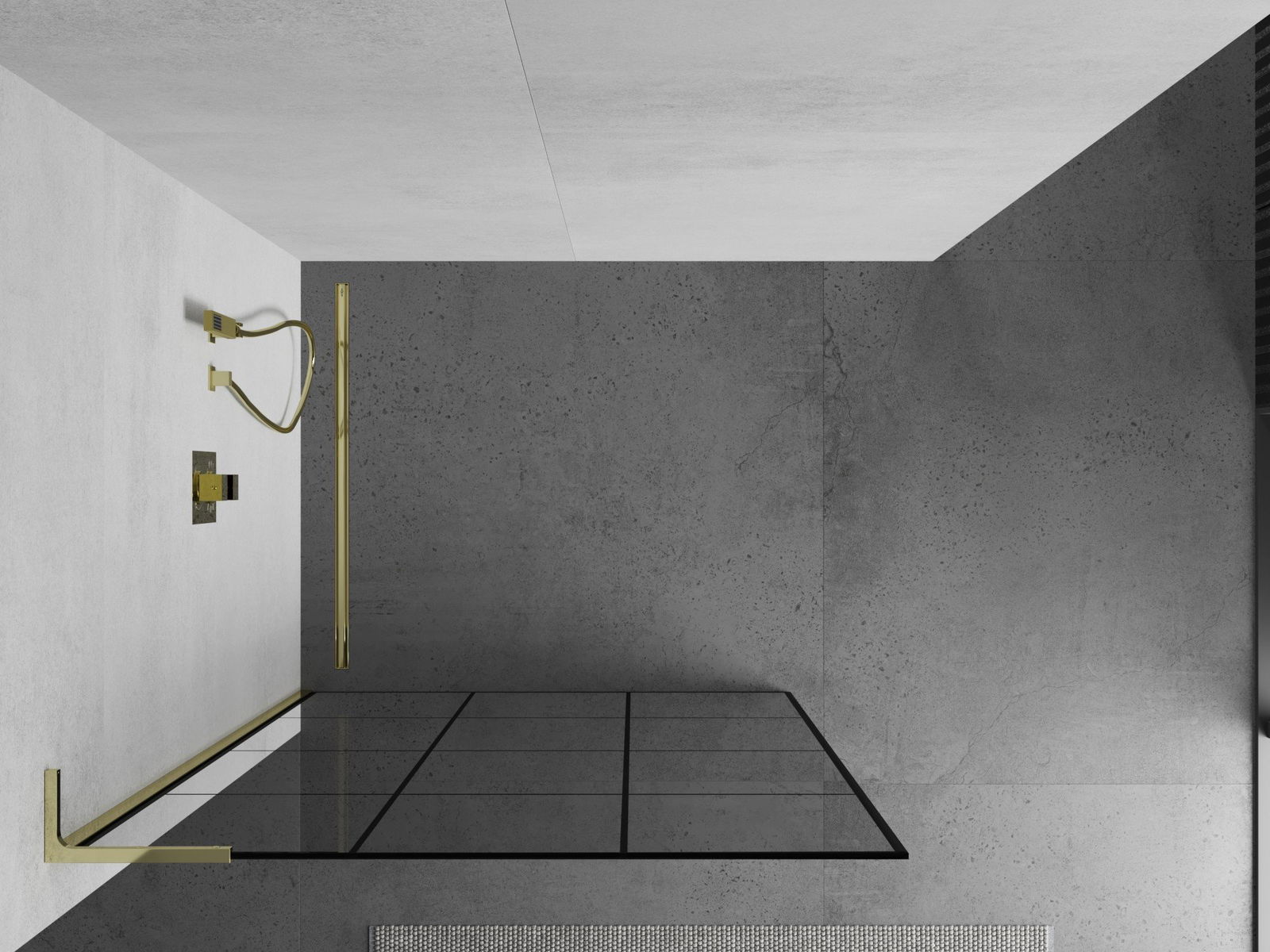 Mexen Kioto L paroi de douche Walk-in 100 x 200 cm, grille noire, or - 800-100-103-50-77