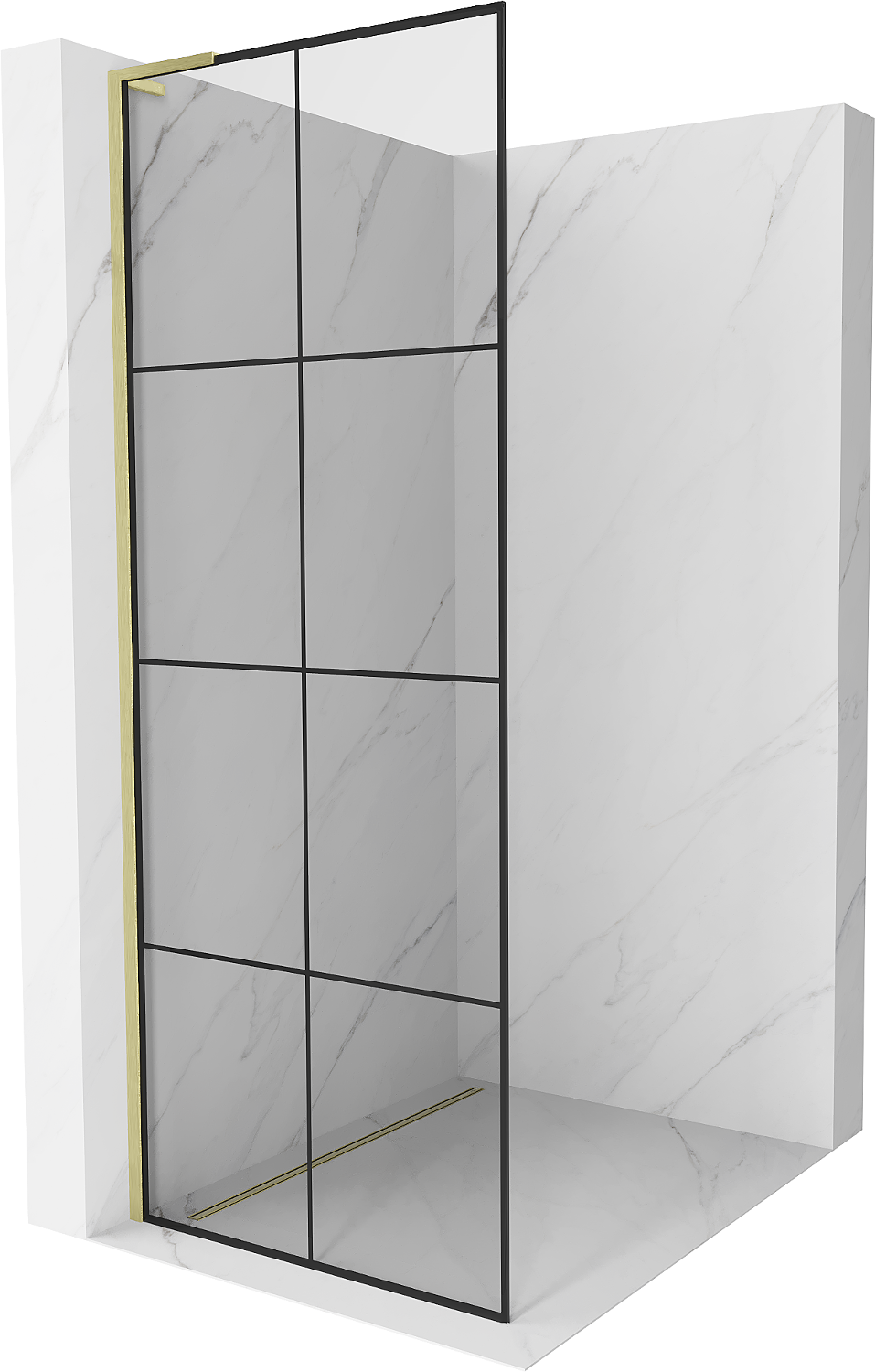 Mexen Kioto L paroi de douche Walk-in 80 x 200 cm, grille noire, doré brossé - 800-080-103-55-77