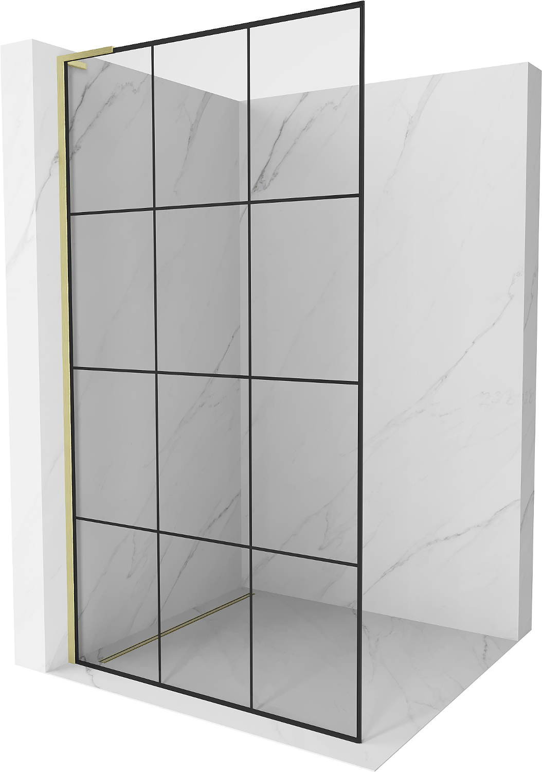 Mexen Kioto L paroi de douche Walk-in 110 x 200 cm, grille noire, or brossé - 800-110-103-55-77