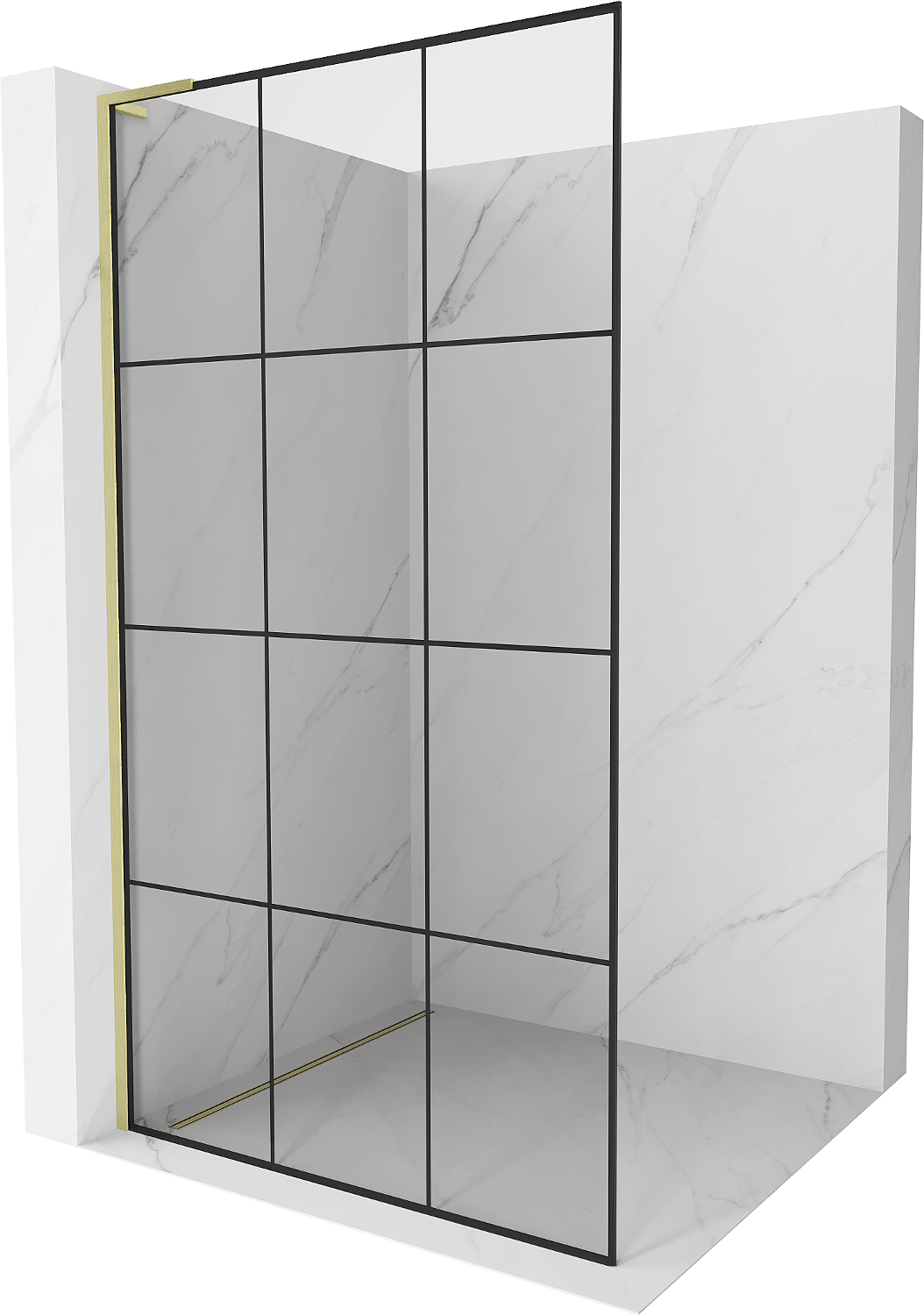 Mexen Kioto L paroi de douche Walk-in 120 x 200 cm, motif grille noire, dorée brossée - 800-120-103-55-77