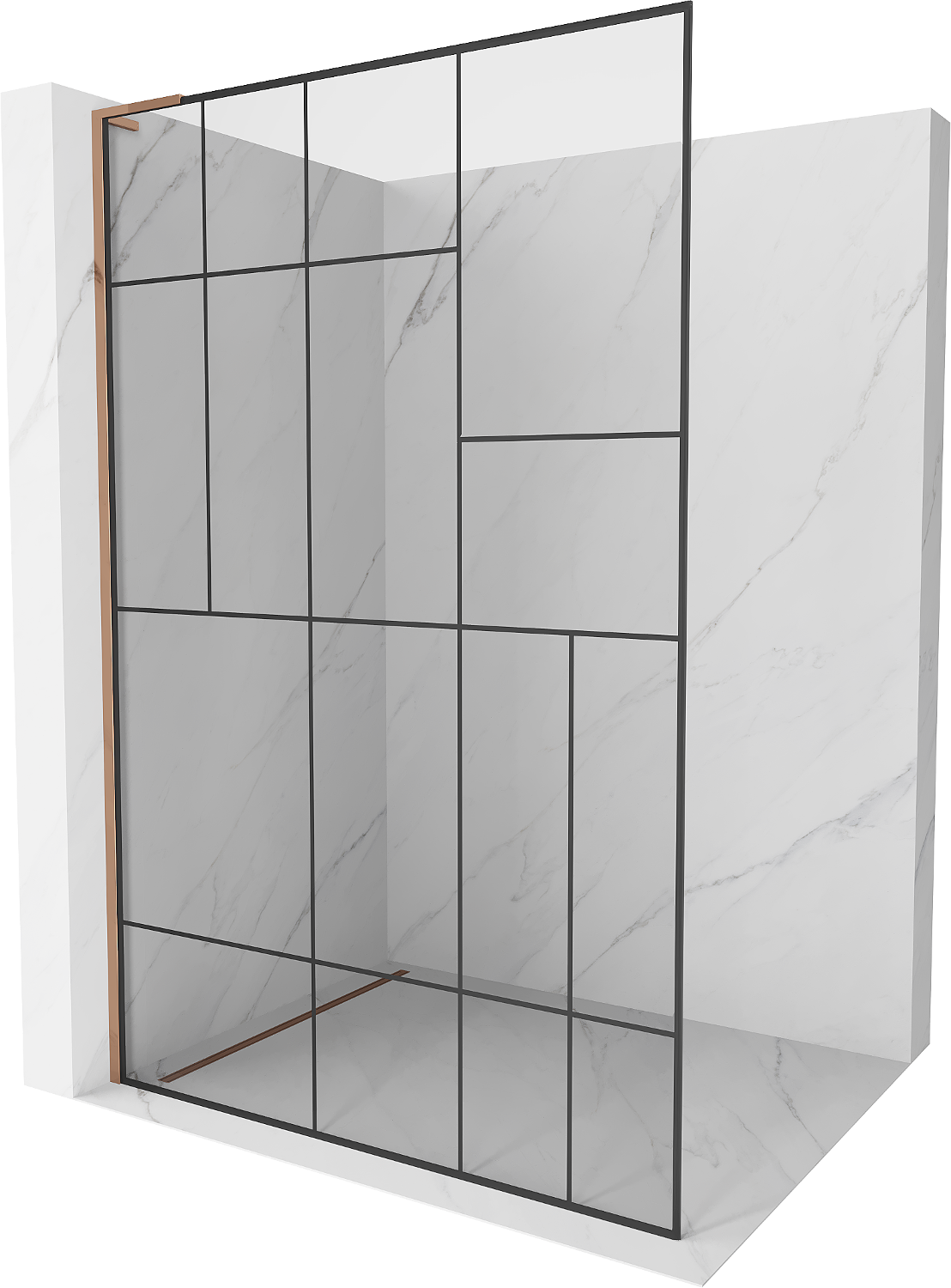 Mexen Kioto L paroi de douche Walk-in 100 x 200 cm, motif noir, or rose - 800-100-103-60-78