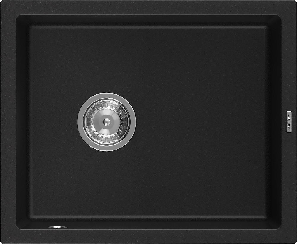 Mexen Pedro évier en granit 1 bac 560 x 460 mm, noir, siphon chromé - 6508561000-77