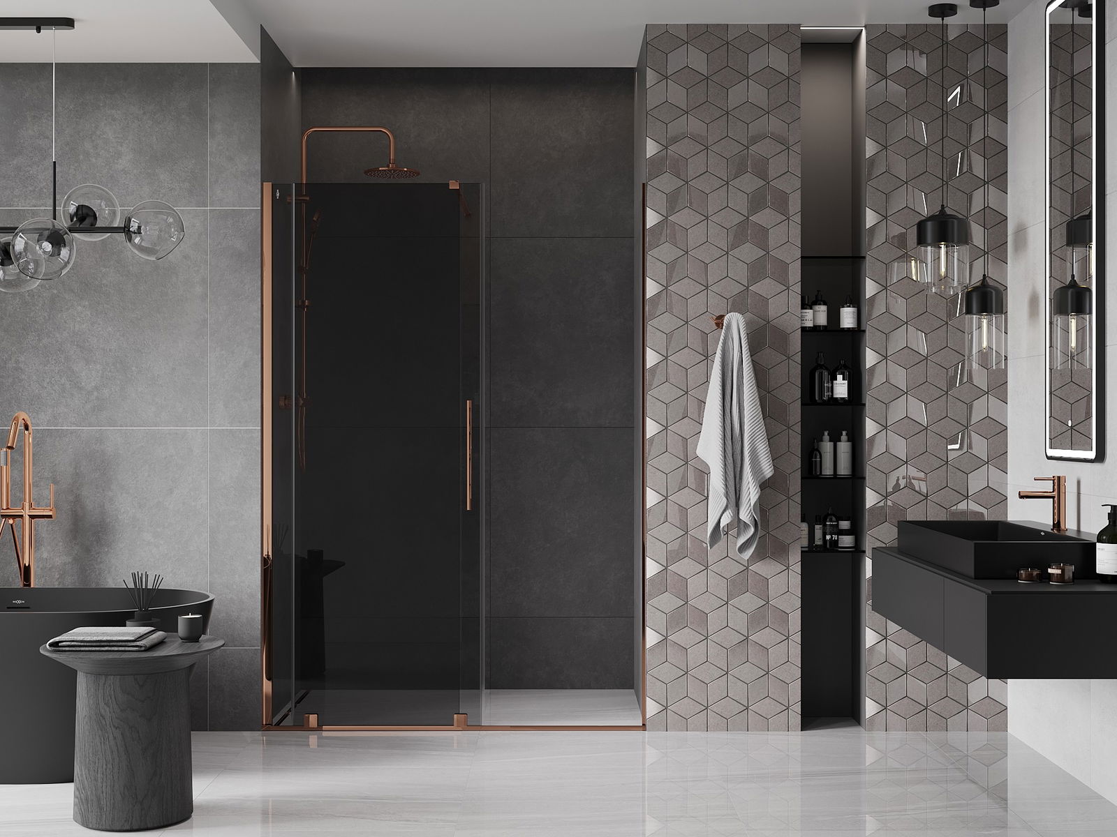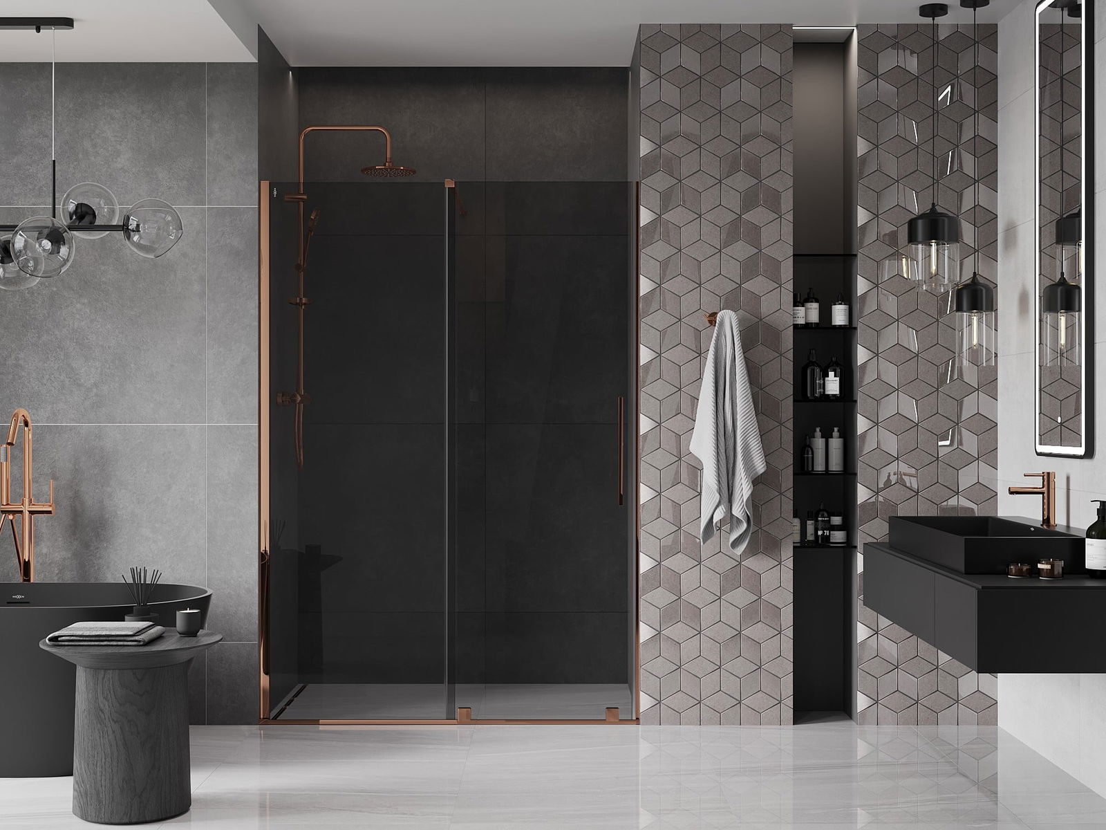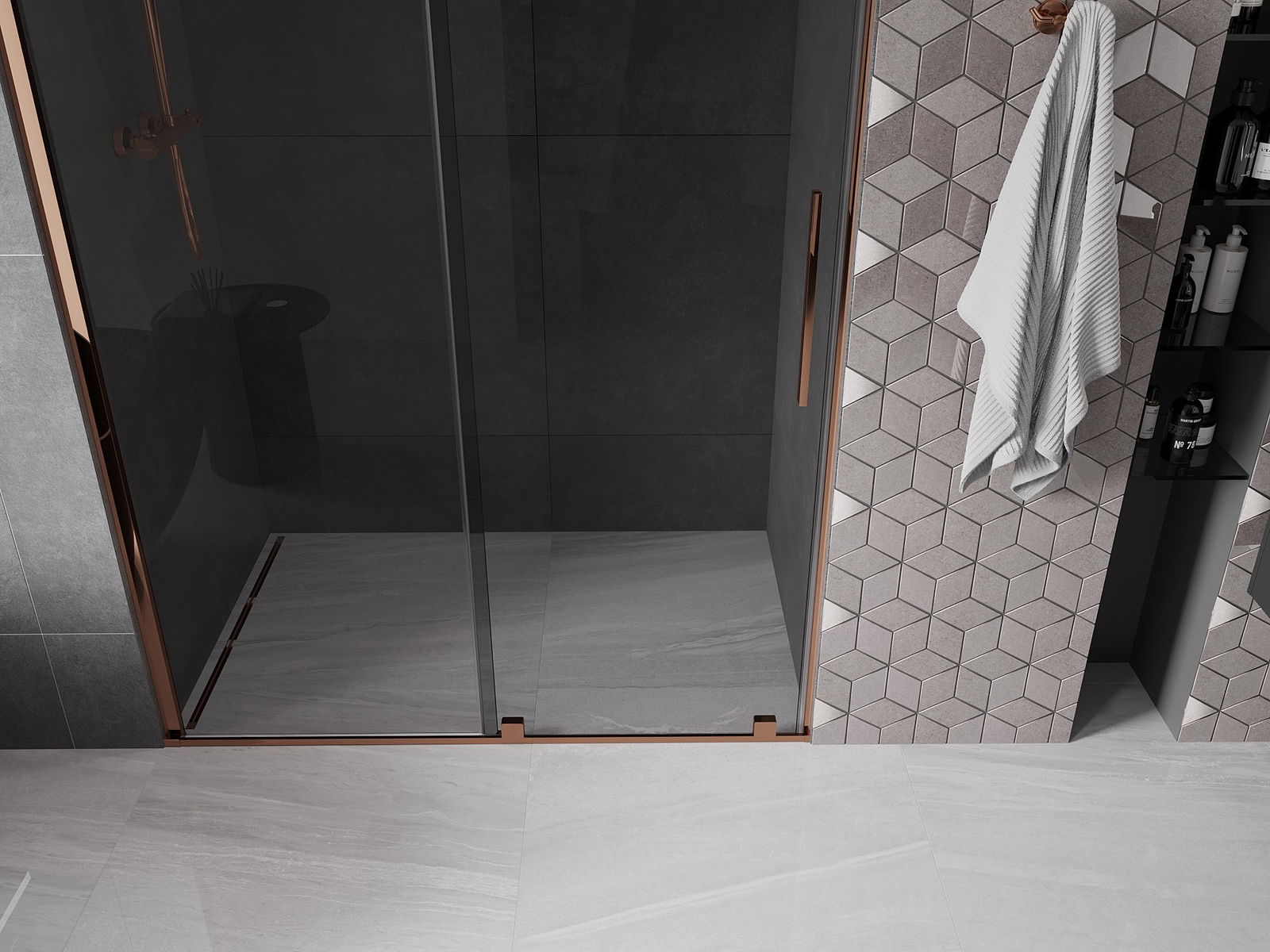 Mexen Velar porte de douche coulissante 130 cm, graphite, or rose - 871-130-000-41-60