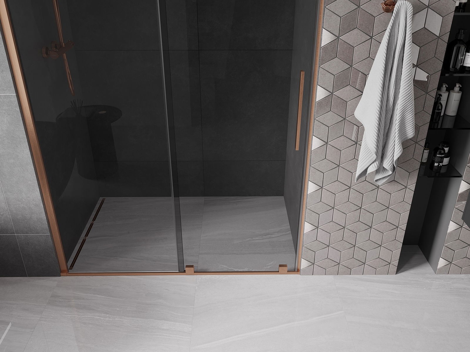 Mexen Velar porte de douche coulissante 150 cm, graphite, cuivre brossé - 871-150-000-41-65