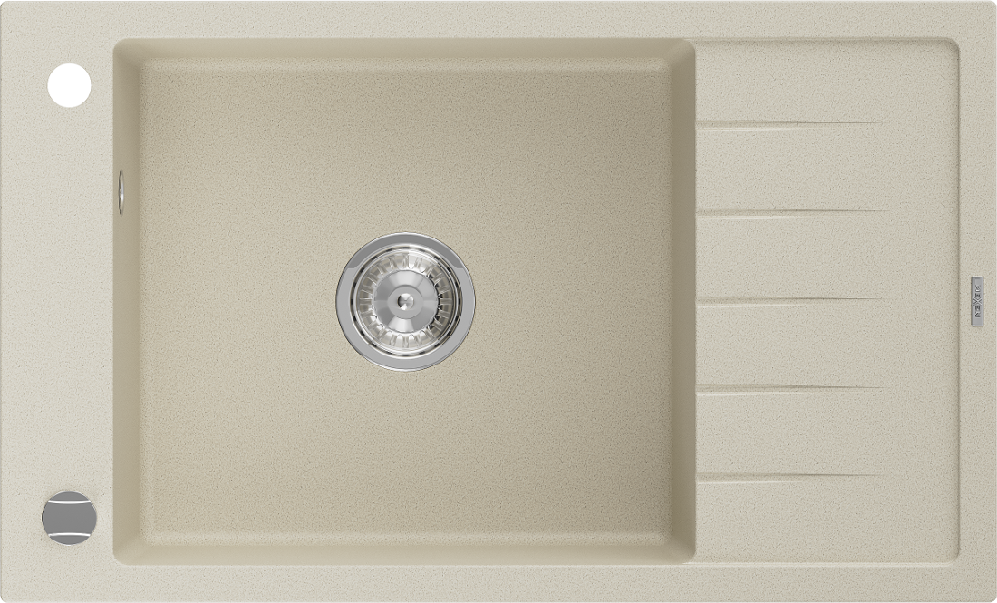 Mexen Elias évier de cuisine en granit 1 bac avec égouttoir 795 x 480 mm, beige, siphon chromé - 6511791005-69