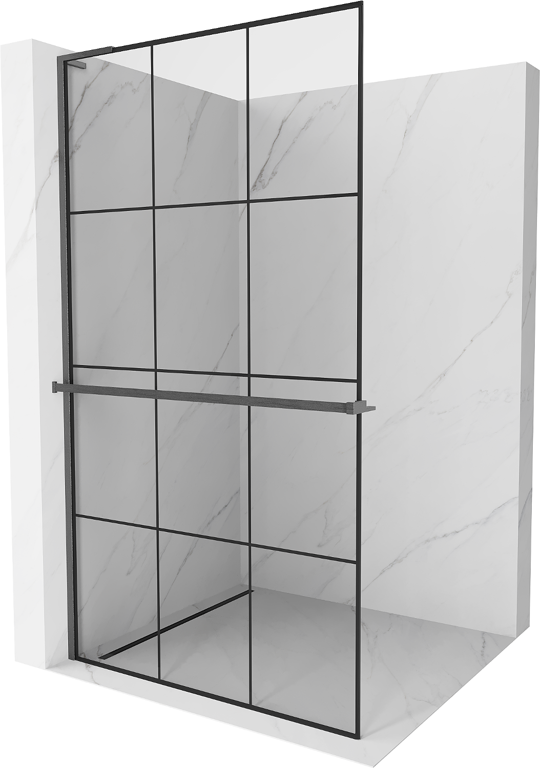 Mexen Kioto+ L paroi de douche avec étagère Walk-in 110 x 200 cm, grille noire, gun gray brossé - 800-110-123-66-77