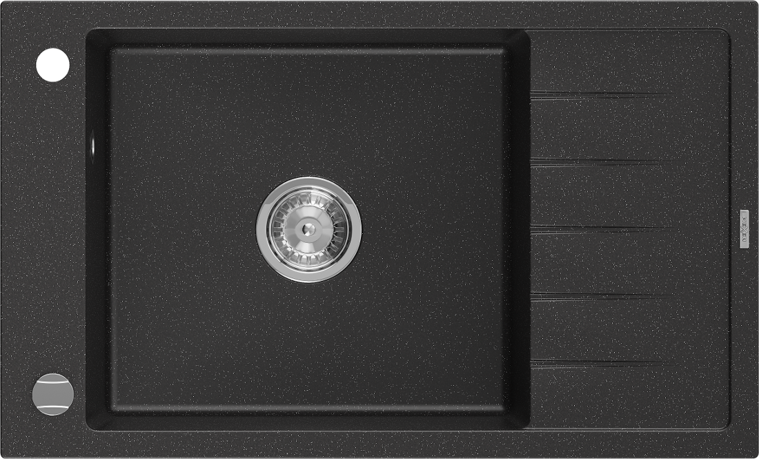 Mexen Elias évier en granit 1-bac avec égouttoir 795 x 480 mm, noir/argent métallisé, siphon chromé - 6511791005-73
