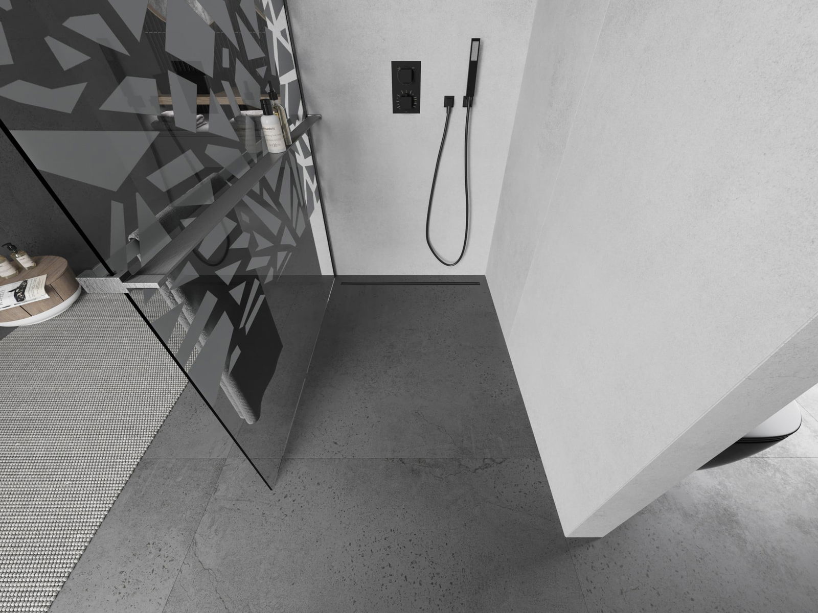 Mexen Kioto+ L paroi de douche avec étagère Walk-in 80 x 200 cm, motif blanc, gris canon brossé - 800-080-123-66-85