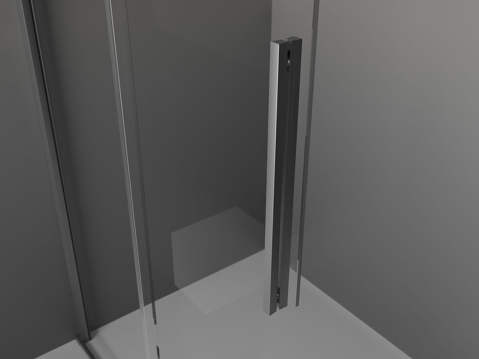 Poignée pratique et confortable en acier inoxydable. La forme moderne associée à une finition assortie à la couleur des profilés confère à l'ensemble un aspect moderne et élégant, soulignant l'esthétique de chaque salle de bain.