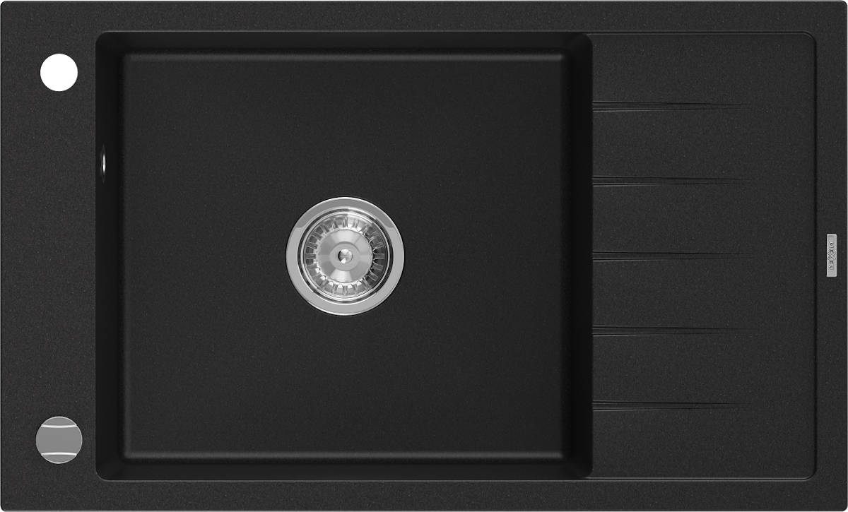 Mexen Elias évier granitique 1 bac avec égouttoir 795 x 480 mm, noir, siphon chromé - 6511791005-77