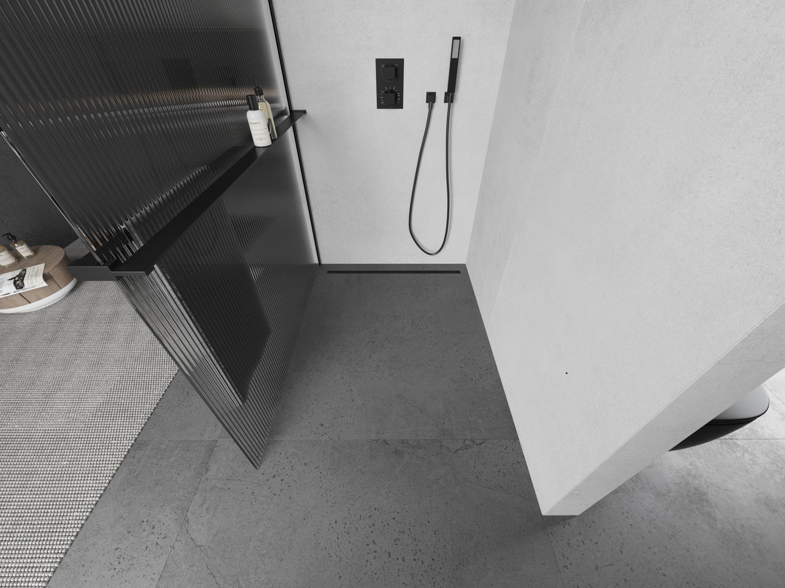 Mexen Kioto+ L paroi de douche avec étagère Walk-in 120 x 200 cm, rayures, noir - 800-120-123-70-09