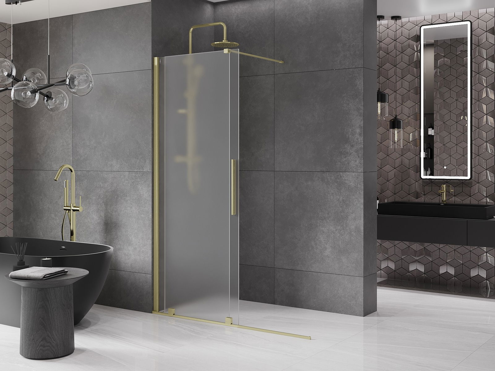 Mexen Velar paroi de douche coulissante Walk-in 150 x 200 cm, givre 8 mm, or brossé - 871-150-000-33-55