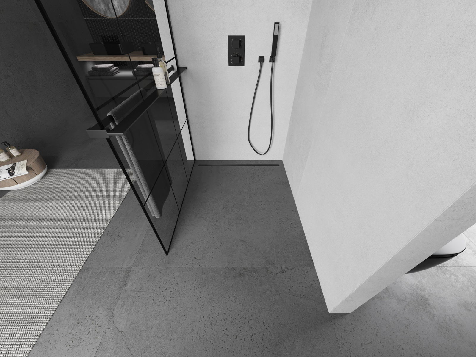 Mexen Kioto+ L paroi de douche avec étagère Walk-in 110 x 200 cm, grille noire, noir - 800-110-123-70-77