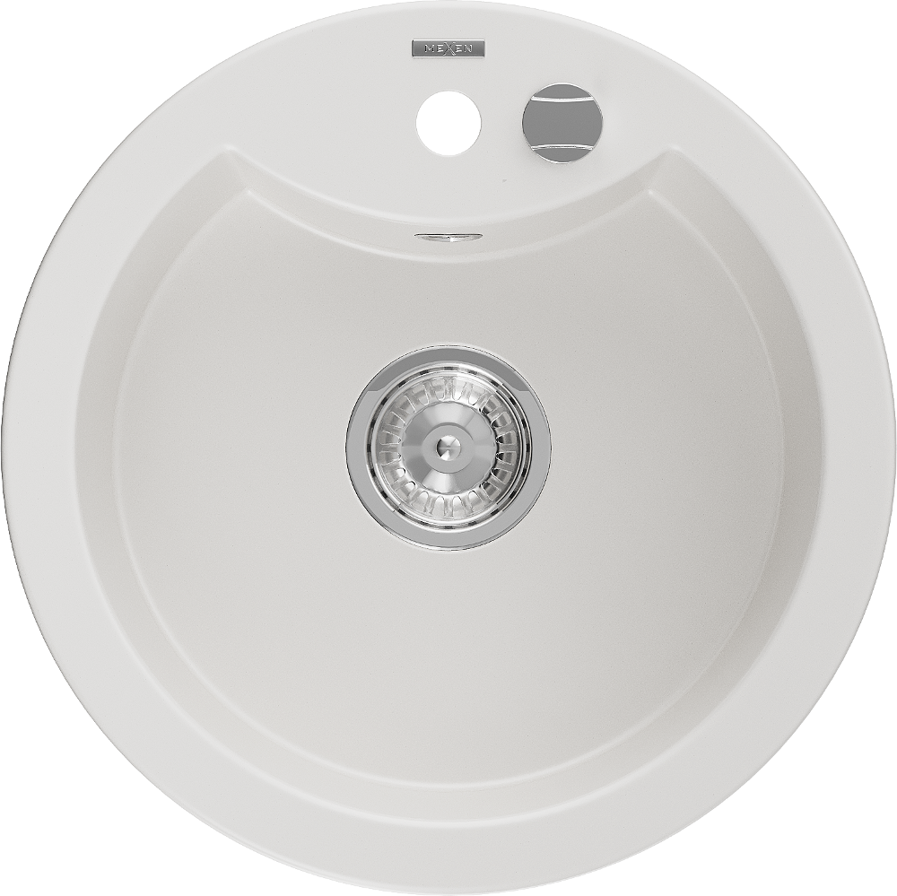 Mexen Diego évier en granit 1 bac 488 x 480 mm, blanc, siphon chromé - 6512481000-20