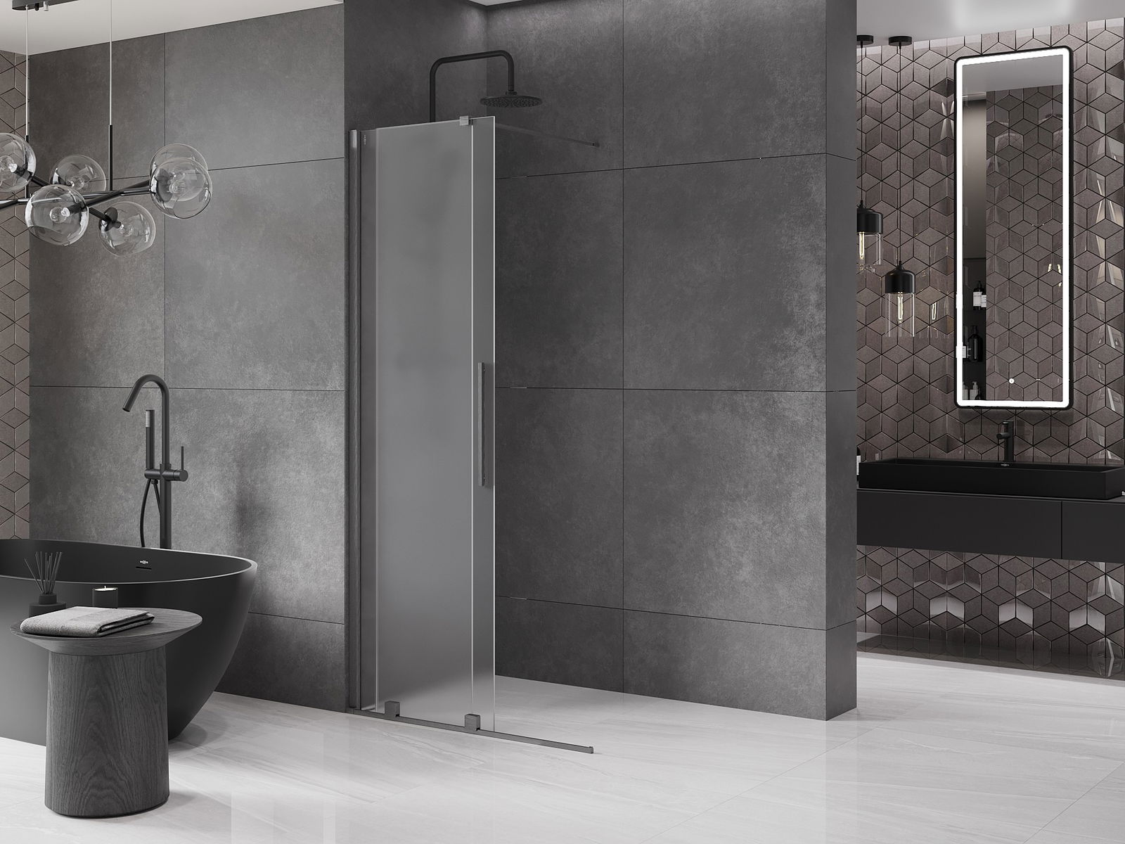 Poignée pratique et confortable en acier inoxydable. La forme moderne associée à une finition assortie à la couleur des profilés confère à l'ensemble un aspect moderne et élégant, soulignant l'esthétique de chaque salle de bain.