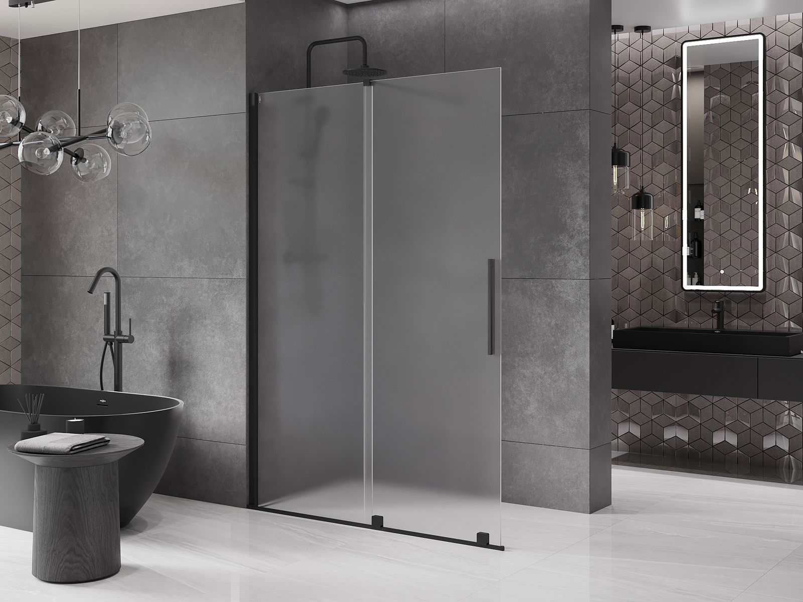 Mexen Velar cloison de douche coulissante Walk-in 160 x 200 cm, givré 8 mm, noir - 871-160-000-33-70
