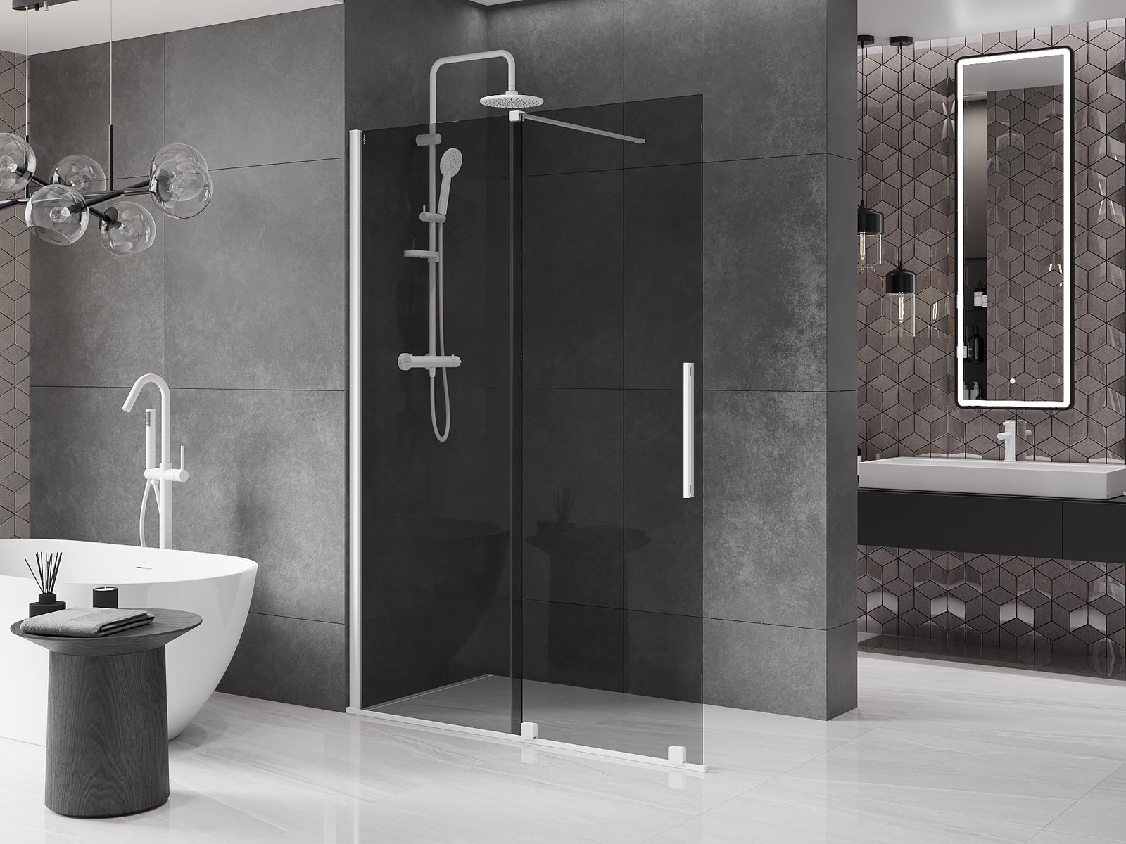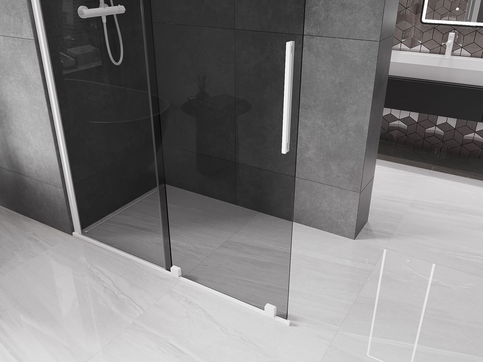 Mexen Velar paroi de douche coulissante Walk-in 140 x 200 cm, graphite 8 mm, blanc - 871-140-000-43-20