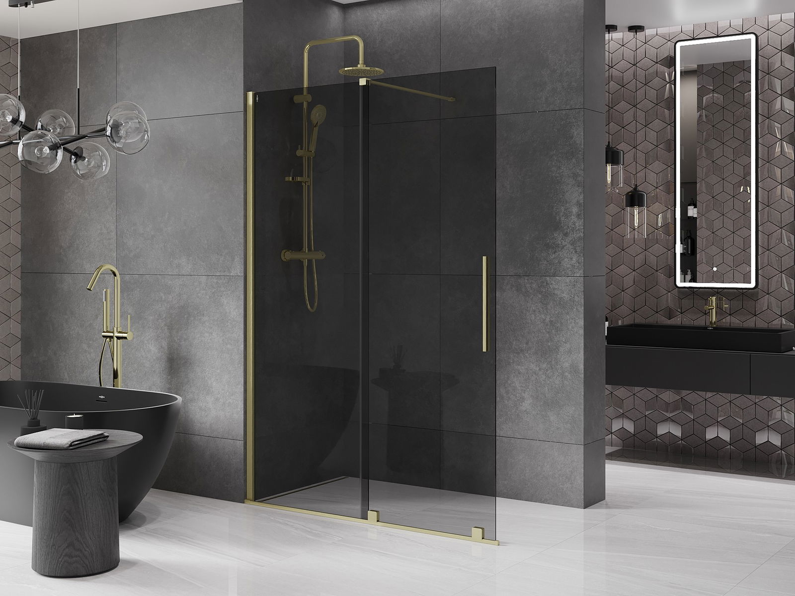 Mexen Velar Paroi de douche coulissante Walk-in 160 x 200 cm, graphite 8 mm, or brossé - 871-160-000-43-55