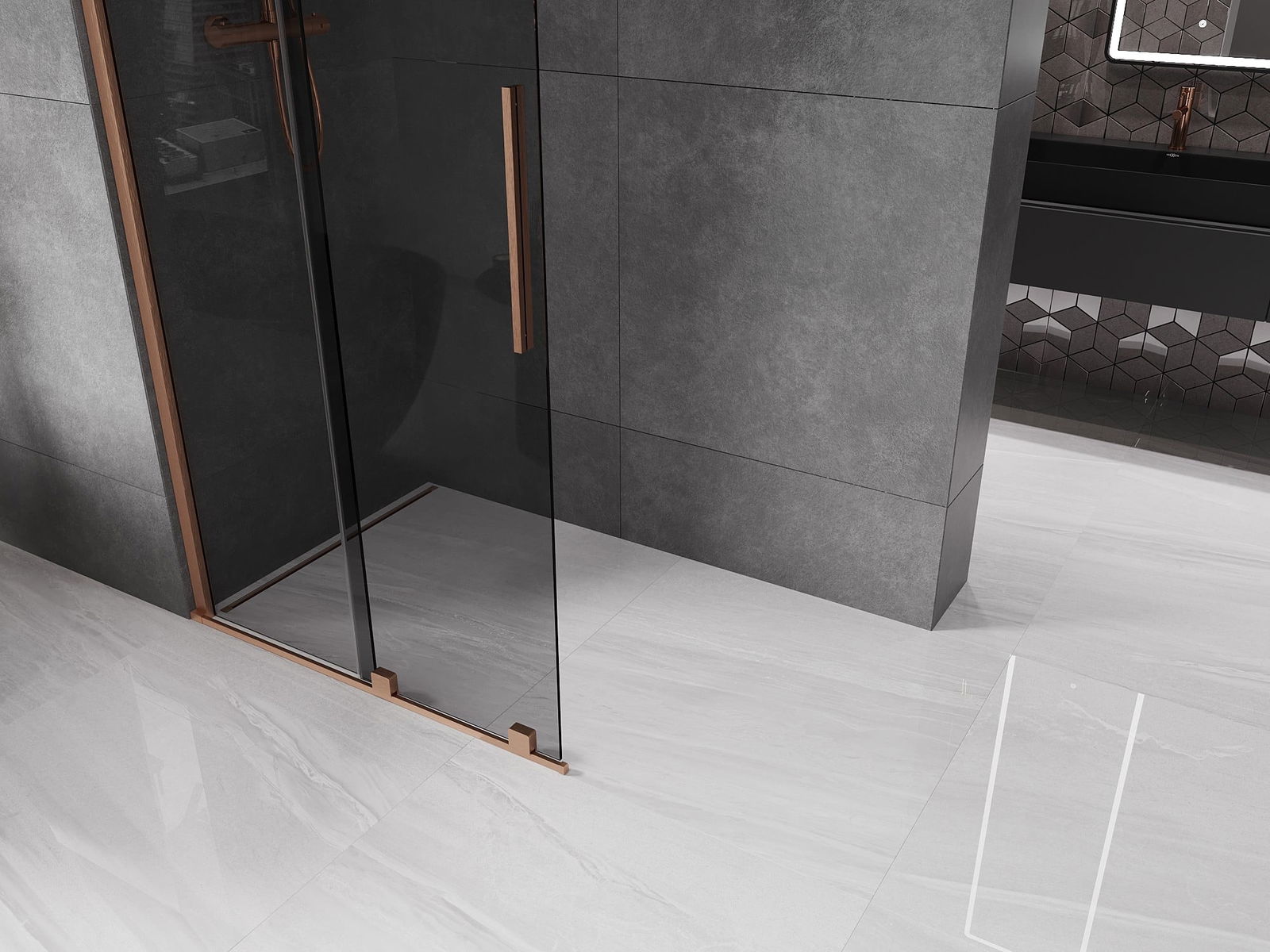 Mexen Velar paroi de douche coulissante Walk-in 120 x 200 cm, graphite 8 mm, cuivre brossé - 871-120-000-43-65