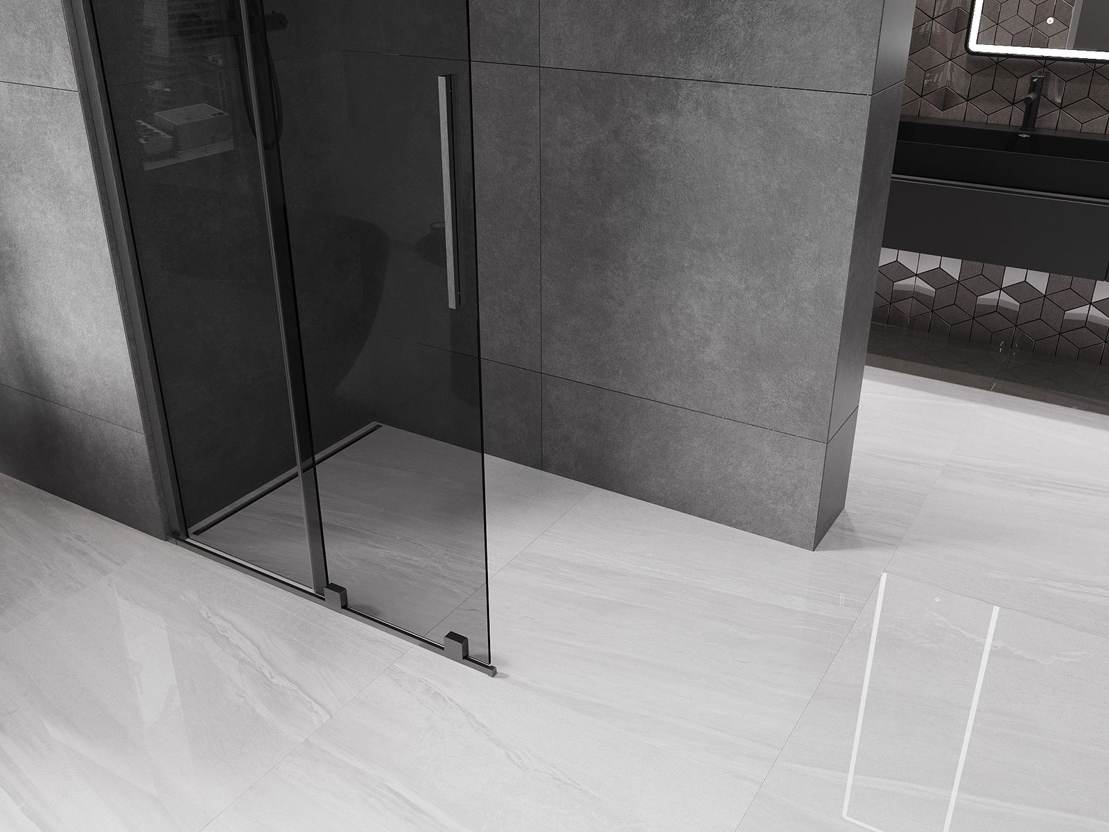 Mexen Velar paroi de douche coulissante Walk-in 120 x 200 cm, graphite 8 mm, gris canon brossé - 871-120-000-43-66