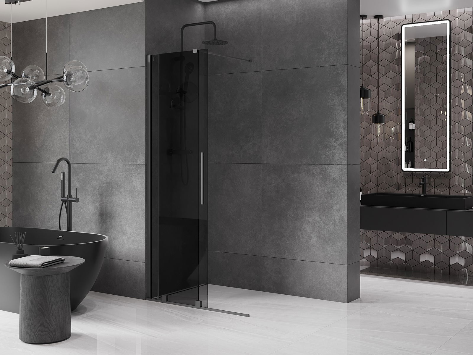Mexen Velar paroi de douche coulissante Walk-in 90 x 200 cm, graphite 8 mm, métal noir - 871-090-000-43-95