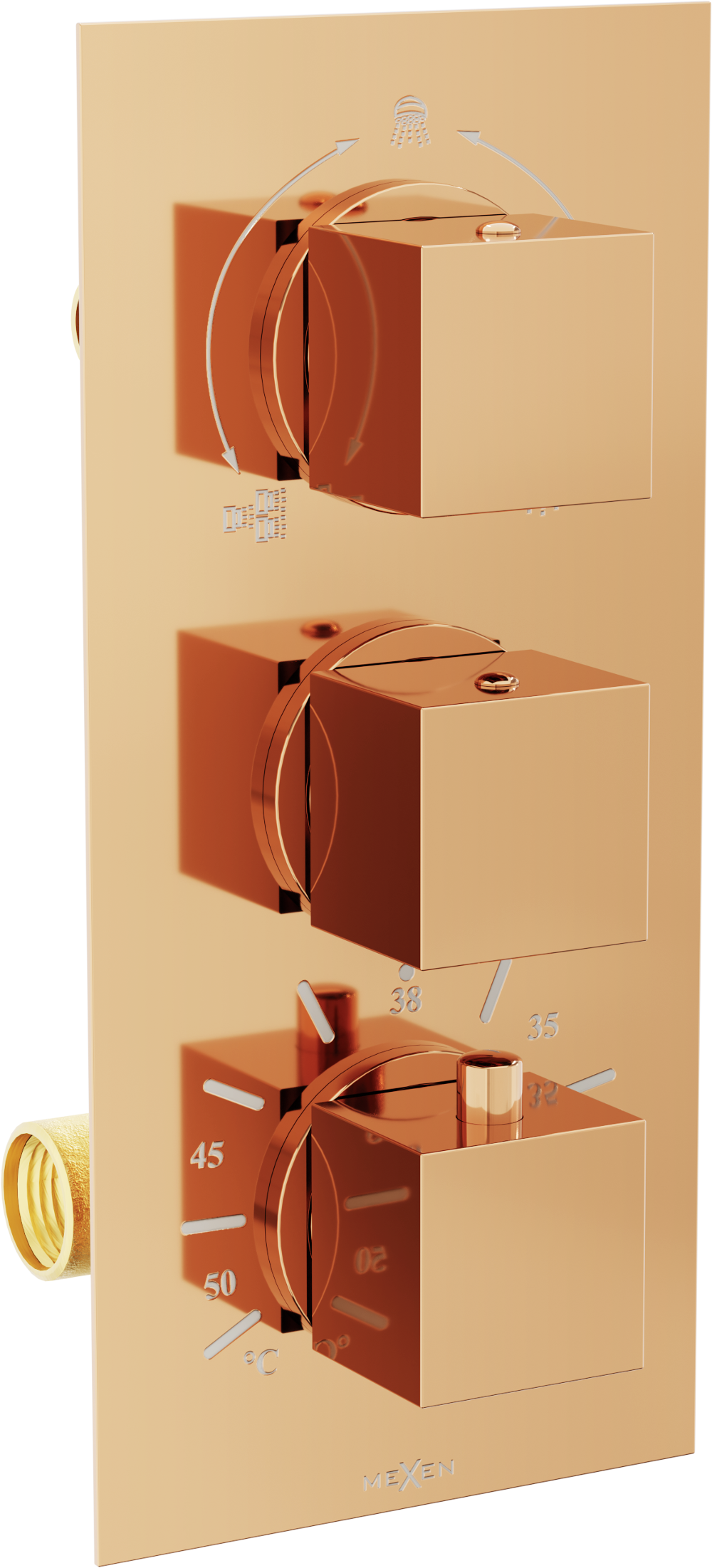 Mexen Cube robinet thermostatique de baignoire et douche à 3 voies or rose - 77503-60