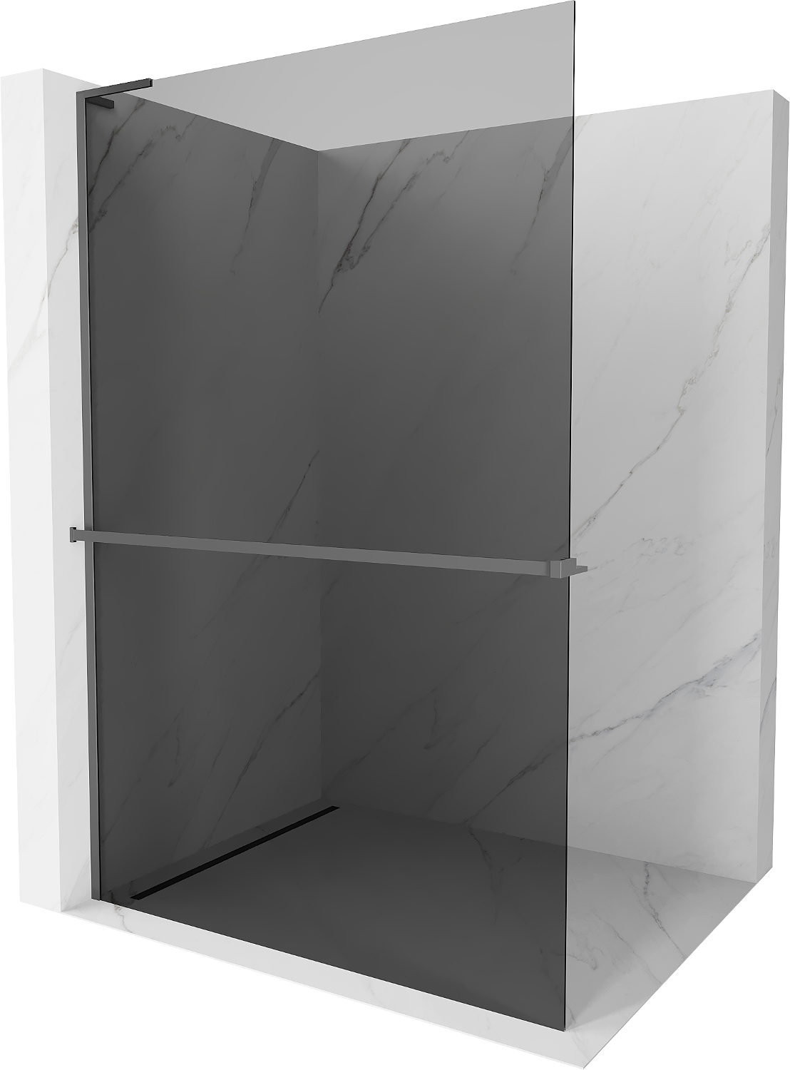 Mexen Kioto+ L paroi de douche avec étagère Walk-in 80 x 200 cm, graphite, métal pistolet - 800-080-123-95-40