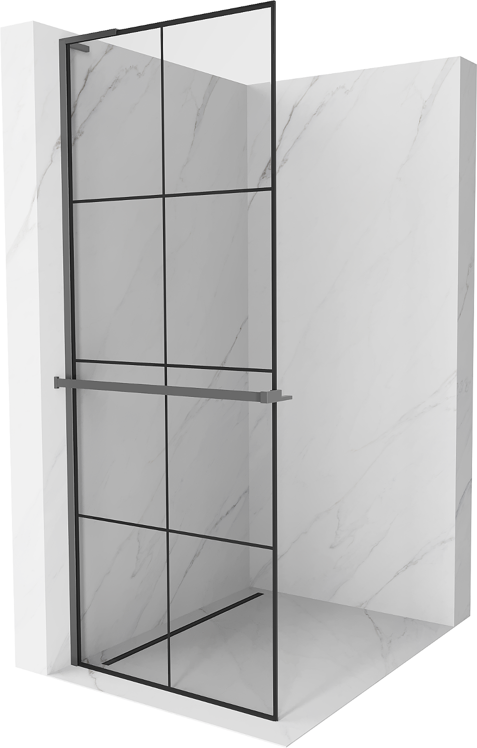 Mexen Kioto+ L paroi de douche avec étagère Walk-in 80 x 200 cm, grille noire, métal gun - 800-080-123-95-77
