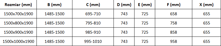 Taille : 150x90 cm (portes 150 cm, paroi 90 cm)