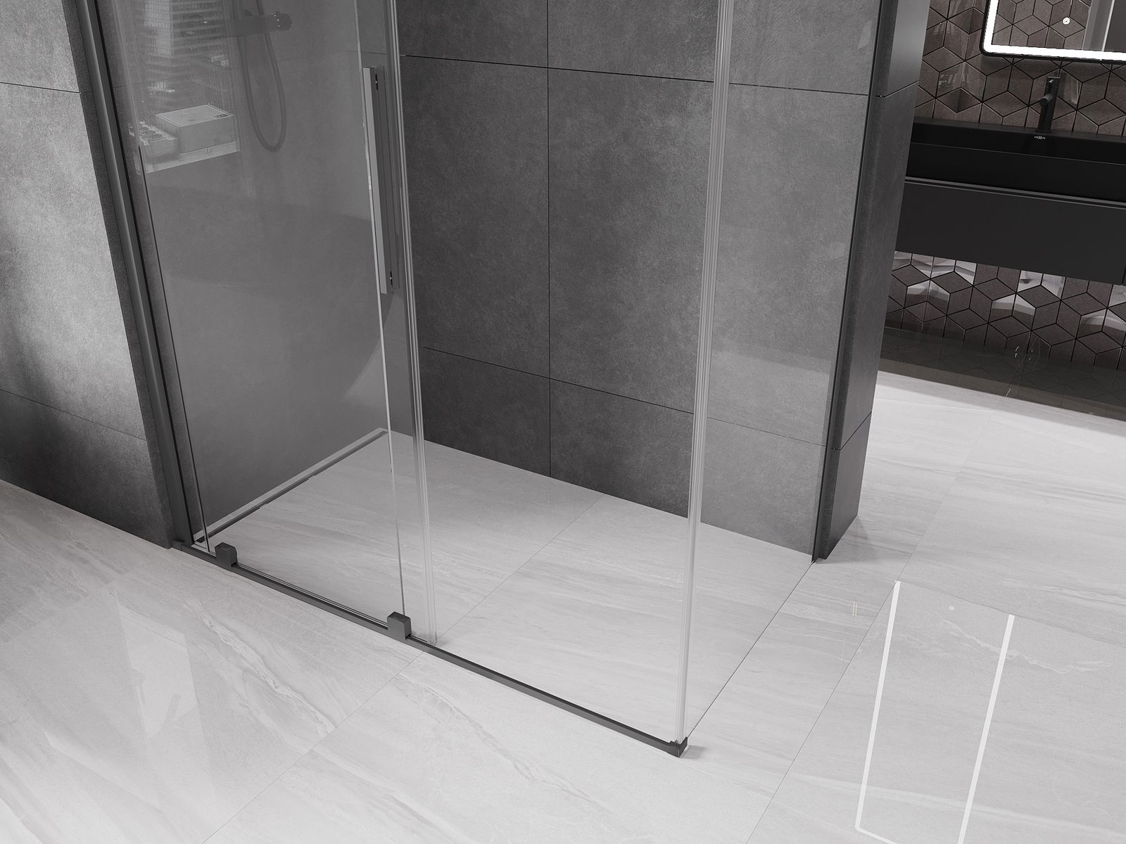 Mexen Velar cabine de douche coulissante 150 x 85 cm, transparent, métal pistolet - 871-150-085-01-95