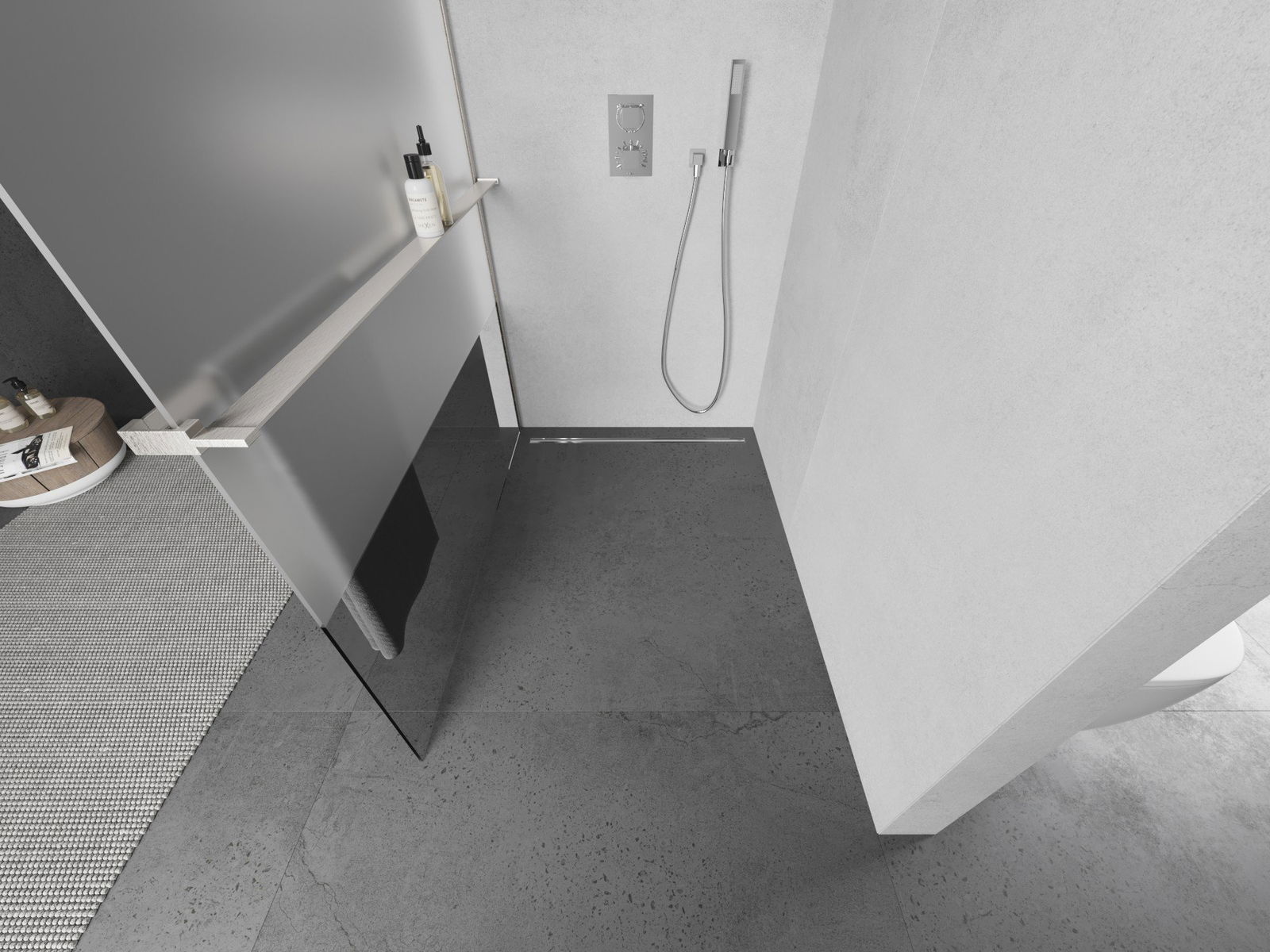 Mexen Kioto+ L paroi de douche avec étagère Walk-in 80 x 200 cm, transparent/givré, nickel brossé - 800-080-123-97-35