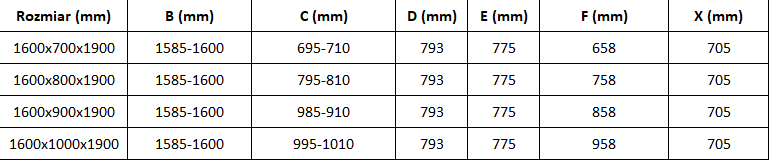 Taille : 160x90 cm (portes 160 cm, paroi 90 cm)