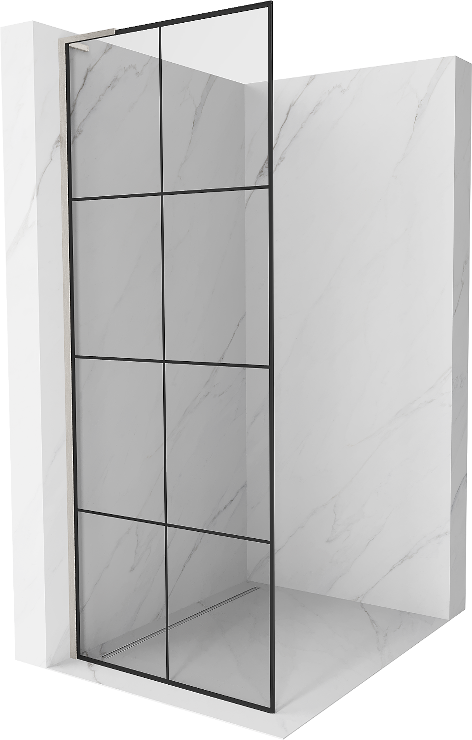 Mexen Kioto L paroi de douche Walk-in 90 x 200 cm, grille noire, nickel brossé - 800-090-103-97-77