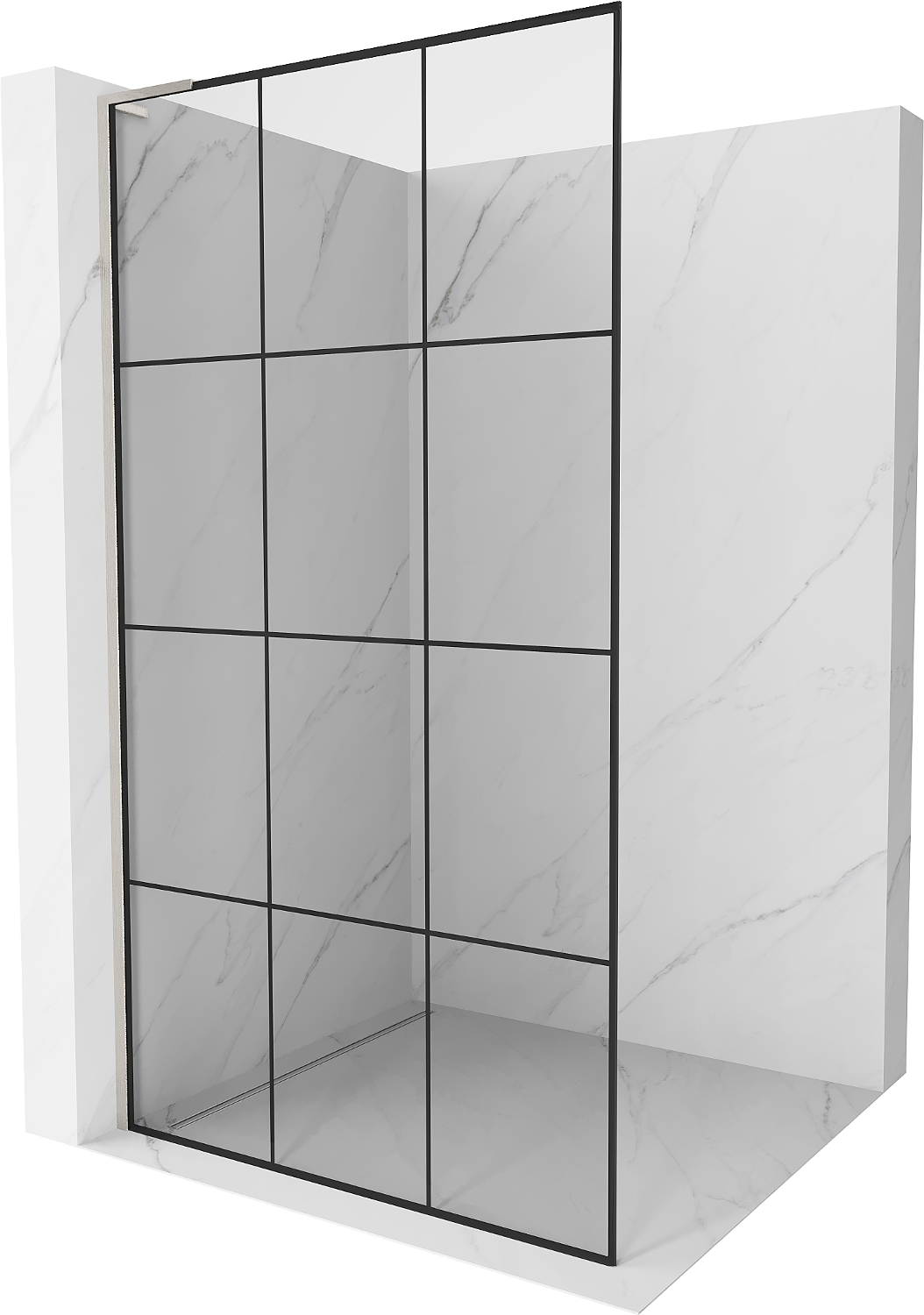 Mexen Kioto L paroi de douche Walk-in 110 x 200 cm, grille noire, nickel brossé - 800-110-103-97-77