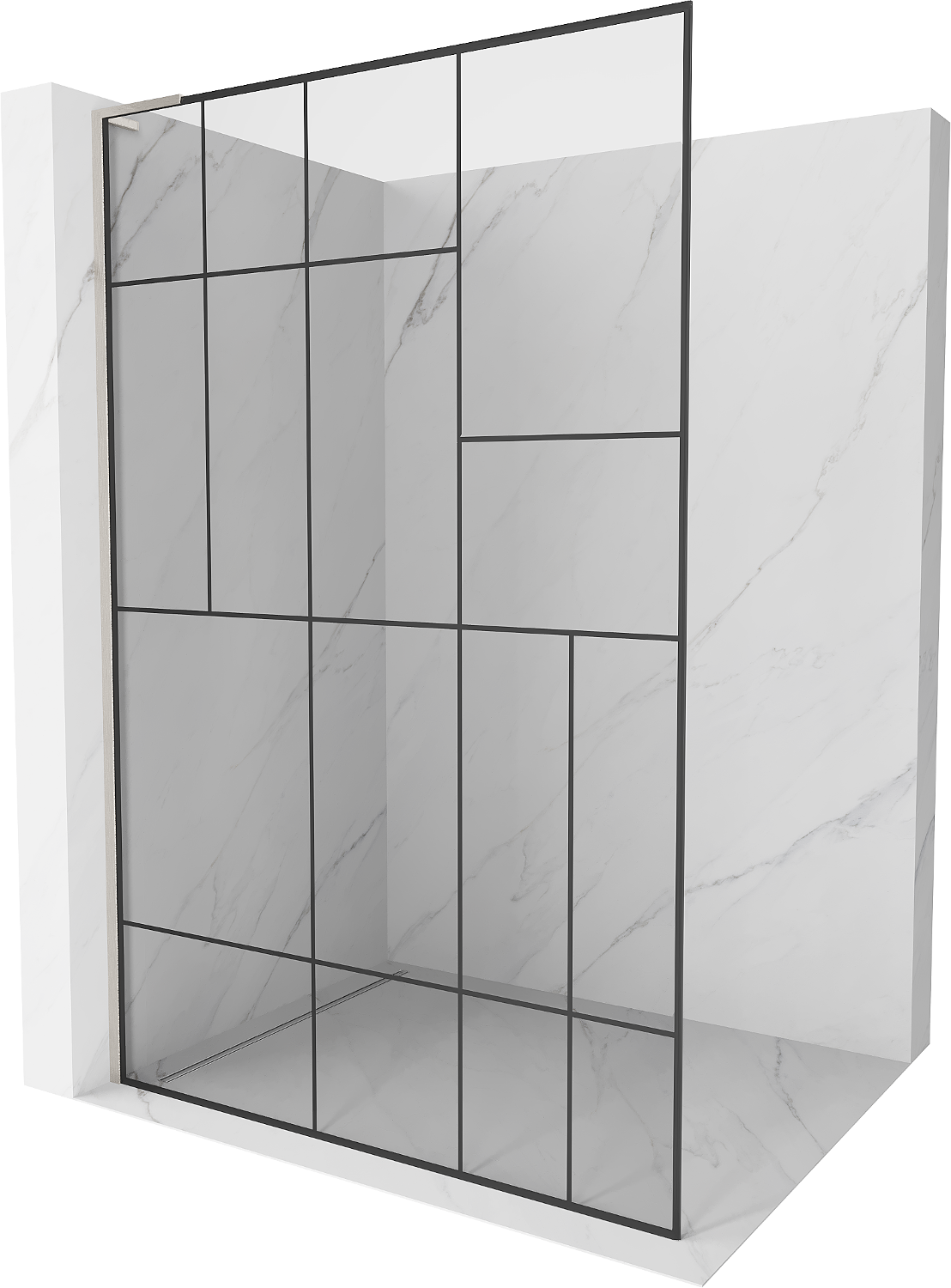 Mexen Kioto L paroi de douche Walk-in 70 x 200 cm, motif noir, nickel brossé - 800-070-103-97-78