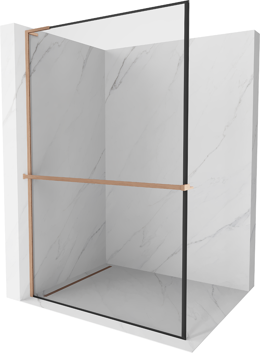 Mexen Kioto+ L paroi de douche avec étagère Walk-in 120 x 200 cm, cadre noir, cuivre brossé - 800-120-123-65-70