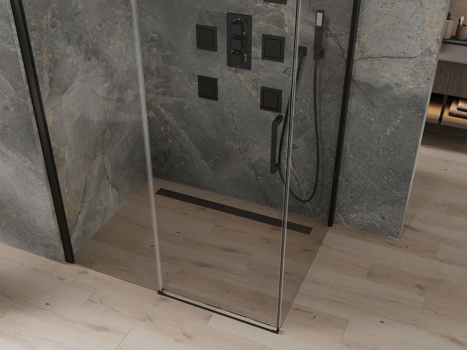 Le produit peut être installé sur un receveur de douche ou directement au sol, selon vos besoins. Son montage universel permet de l'adapter à différents types de salles de bains et configurations d'espace.