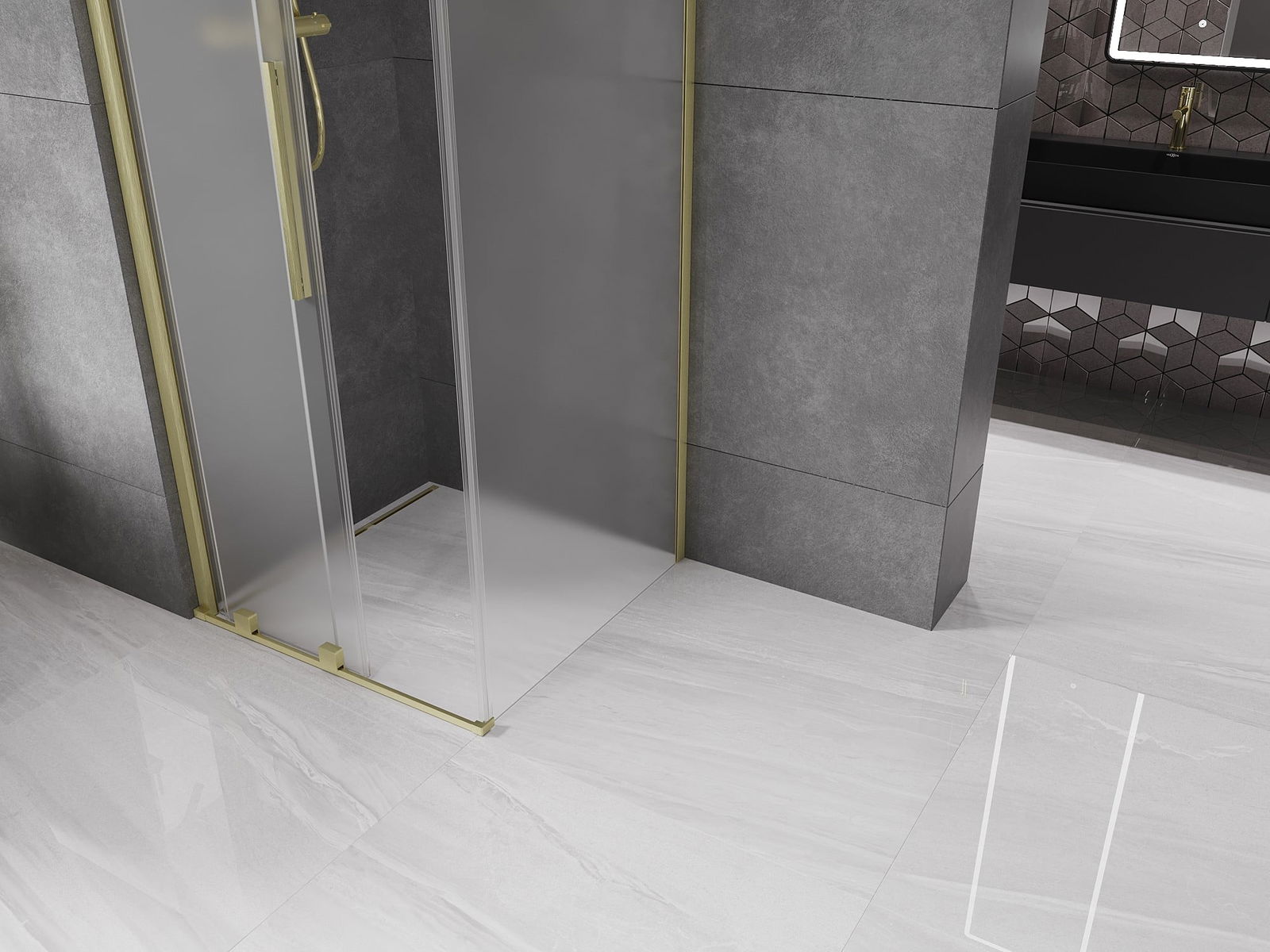 Mexen Velar cabine de douche à porte coulissante 110 x 110 cm, givrée, or brossé - 871-110-110-31-55