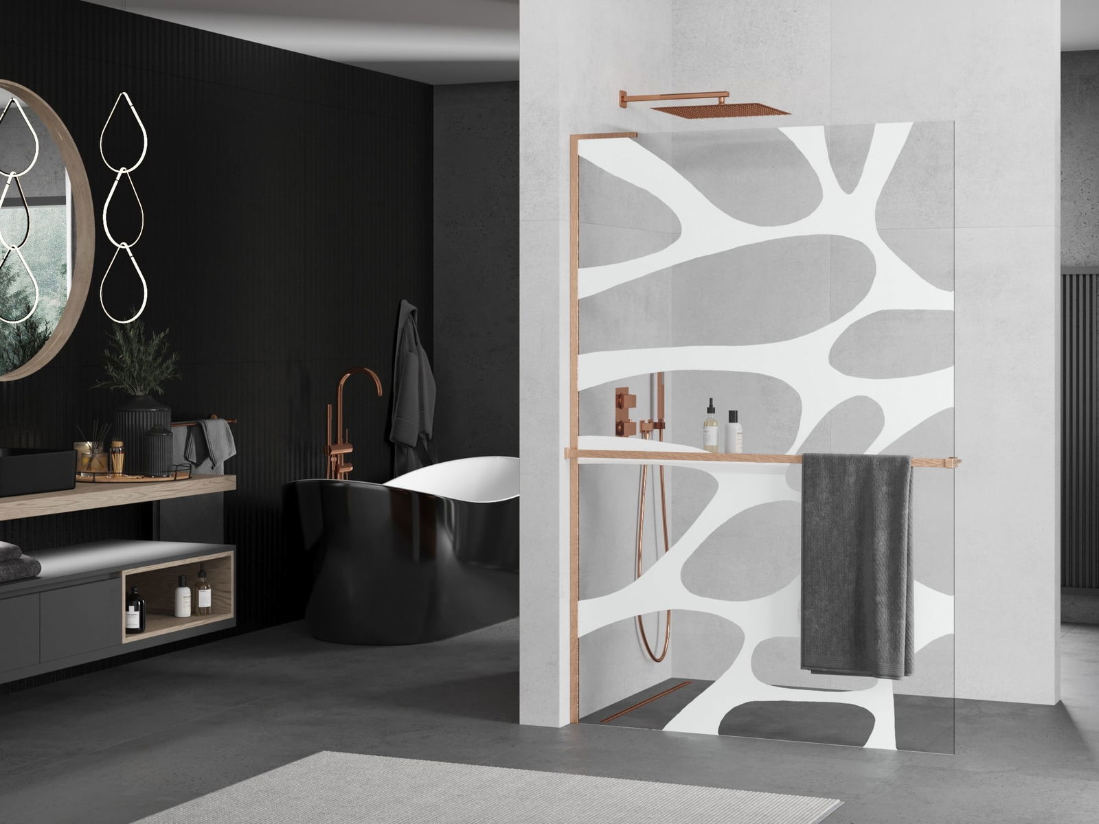 Mexen Kioto+ L paroi de douche avec étagère Walk-in 70 x 200 cm, vague blanche, cuivre brossé - 800-070-123-65-97