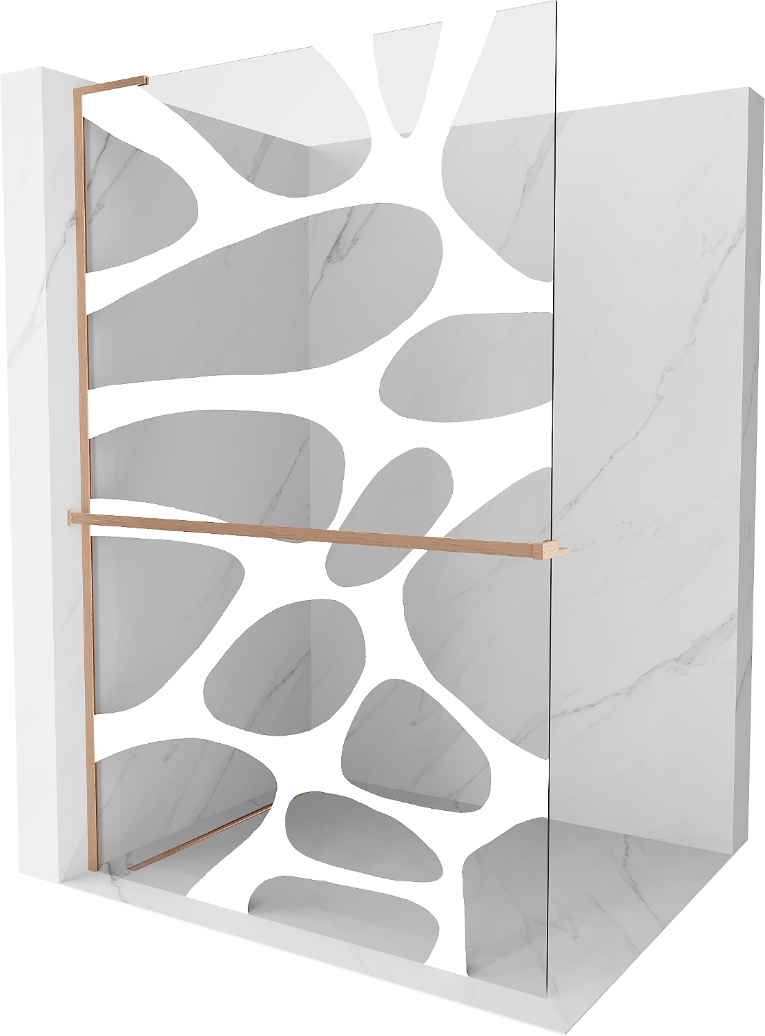 Mexen Kioto+ L paroi de douche avec étagère Walk-in 100 x 200 cm, vague blanche, cuivre brossé - 800-100-123-65-97