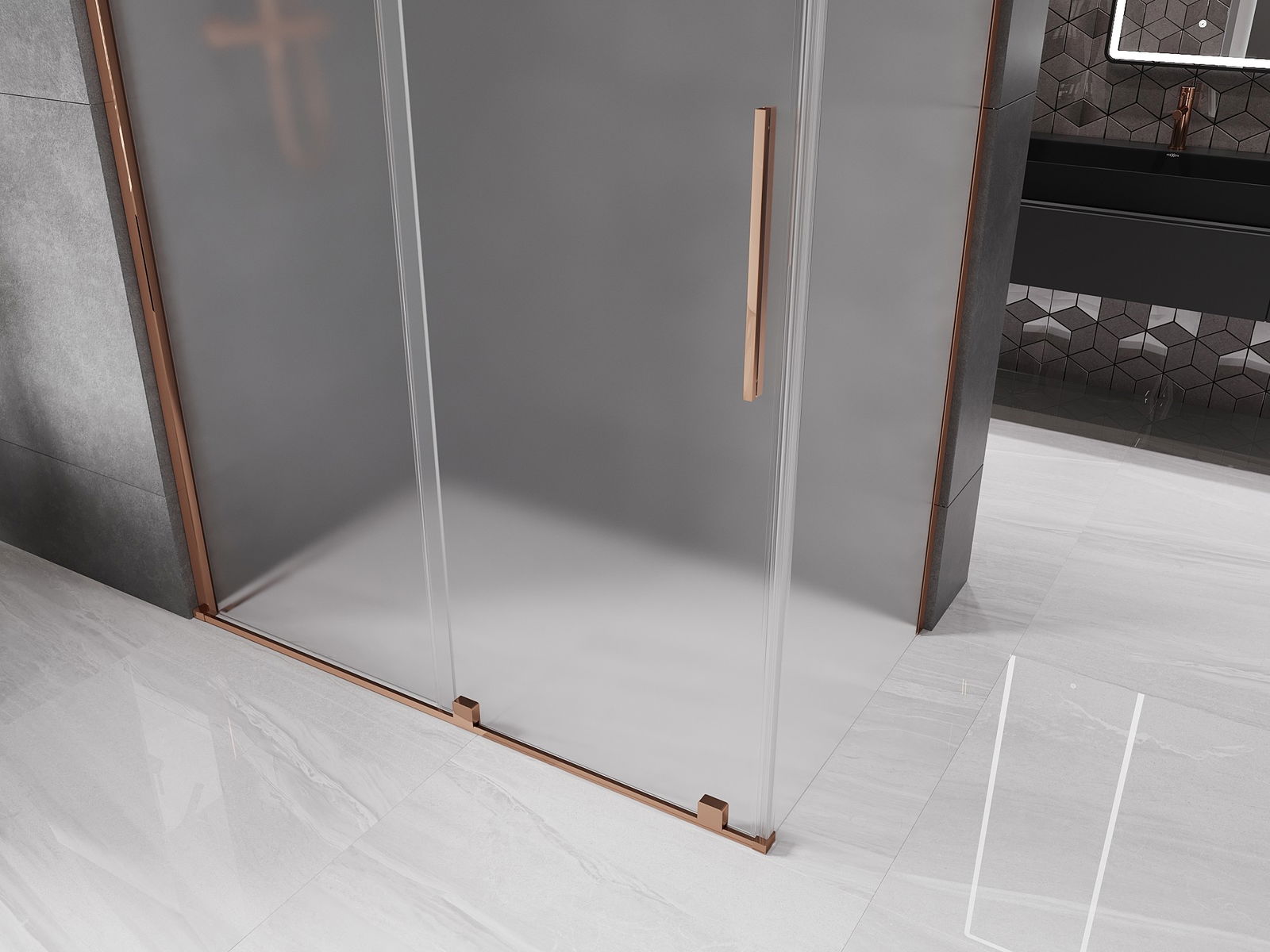 Mexen Velar cabine de douche coulissante 140 x 80 cm, givrée, or rose - 871-140-080-31-60