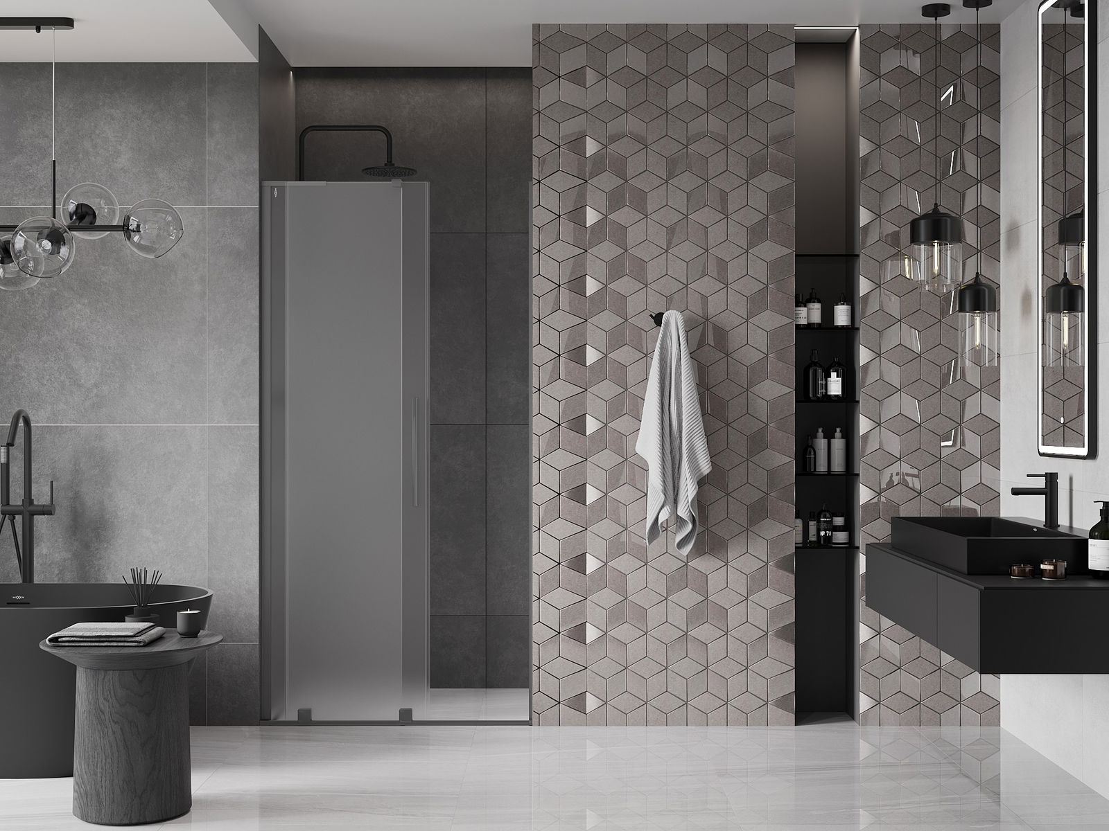 La poignée pratique et confortable est en acier inoxydable. Sa forme élégante, associée à une finition assortie à la couleur des profilés, confère à l'ensemble un style moderne et élégant, soulignant l'esthétique de chaque salle de bains.