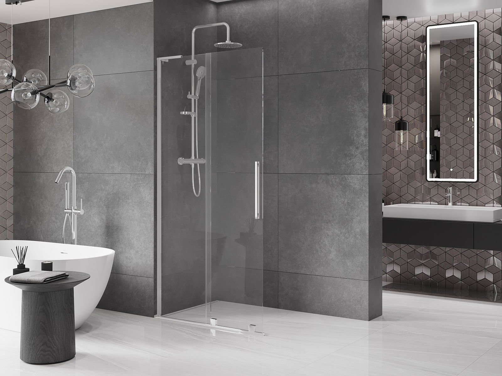 Mexen Velar L paroi de douche coulissante Walk-in 90 x 200 cm, transparent 8 mm, chrome - 871-090-003-03-01