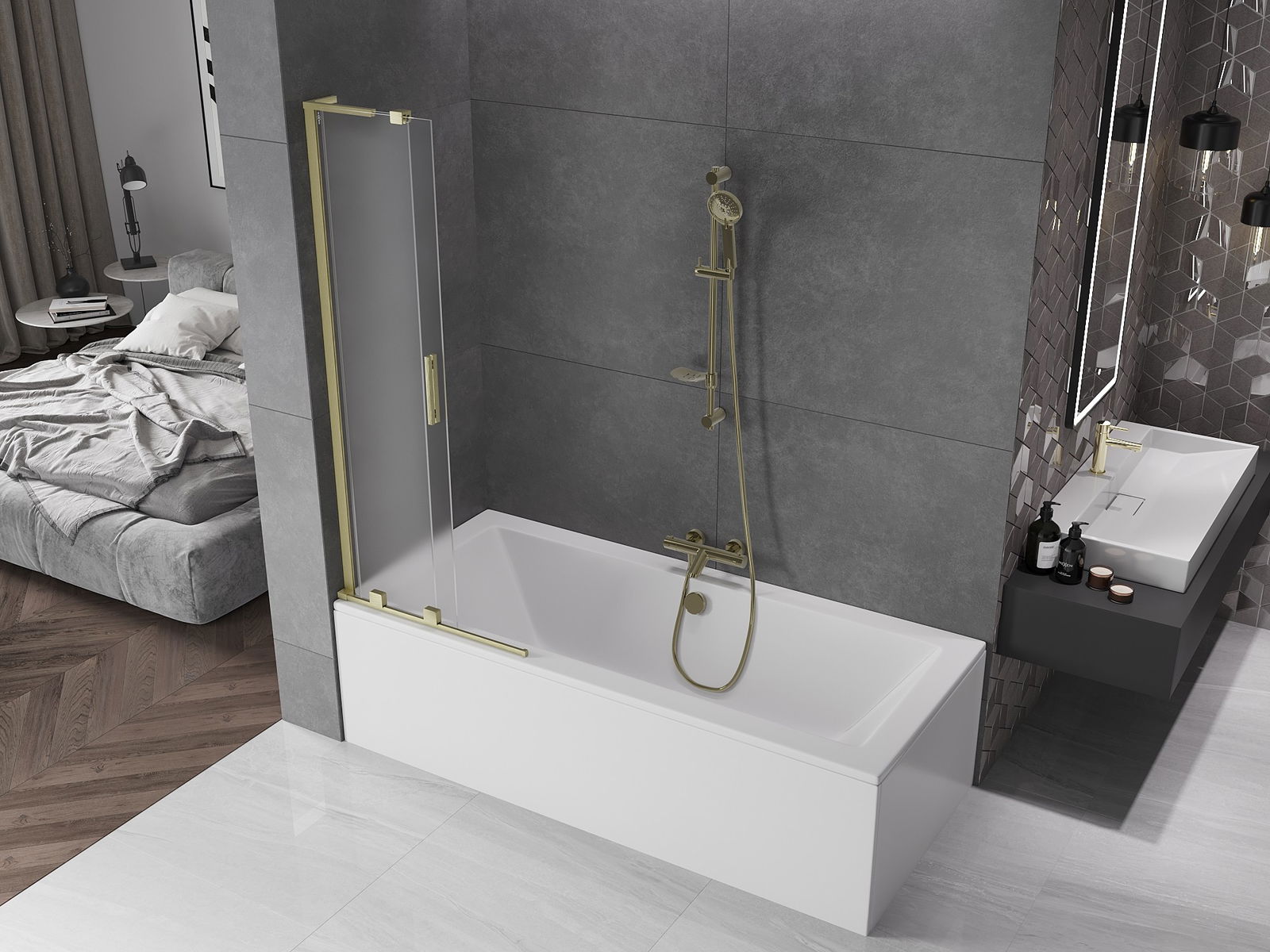 Mexen Velar L paroi de baignoire 2 vitres coulissantes 75 x 150 cm, givré, or brossé - 896-075-003-31-55