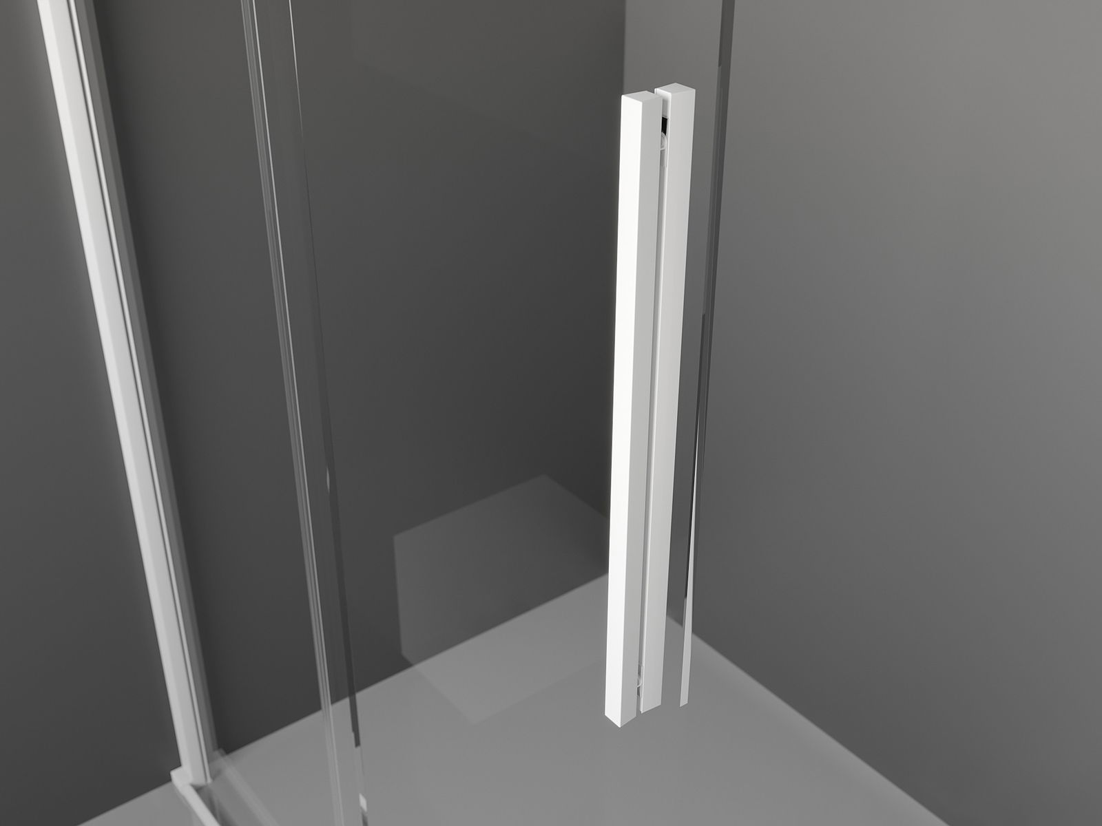 Poignée pratique et confortable en acier inoxydable. La forme moderne associée à une finition assortie à la couleur des profilés confère à l'ensemble un aspect moderne et élégant, soulignant l'esthétique de chaque salle de bain.